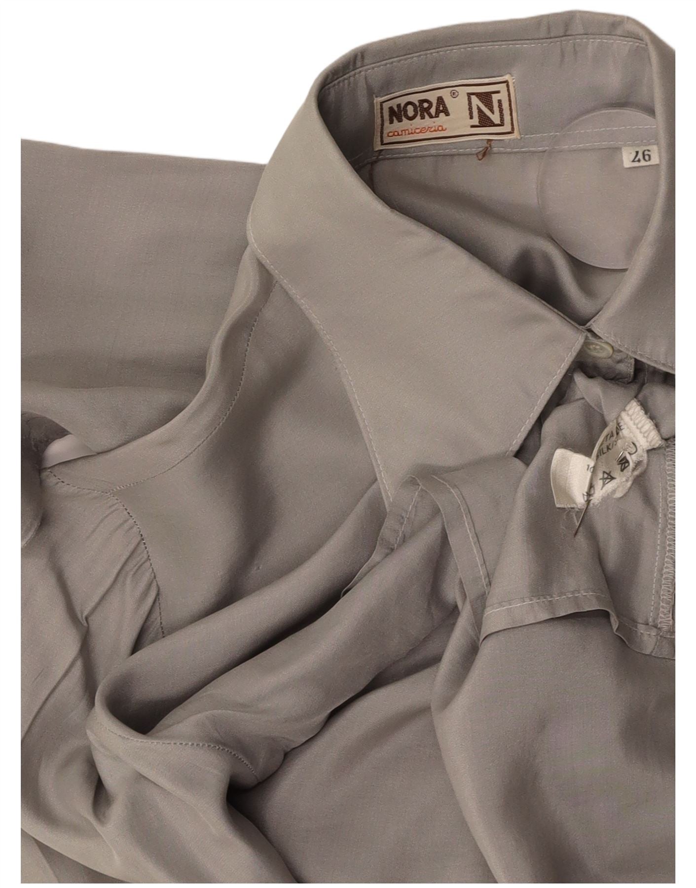 VINTAGE Damen Hemdbluse UK 12 Mittelgraue Seide