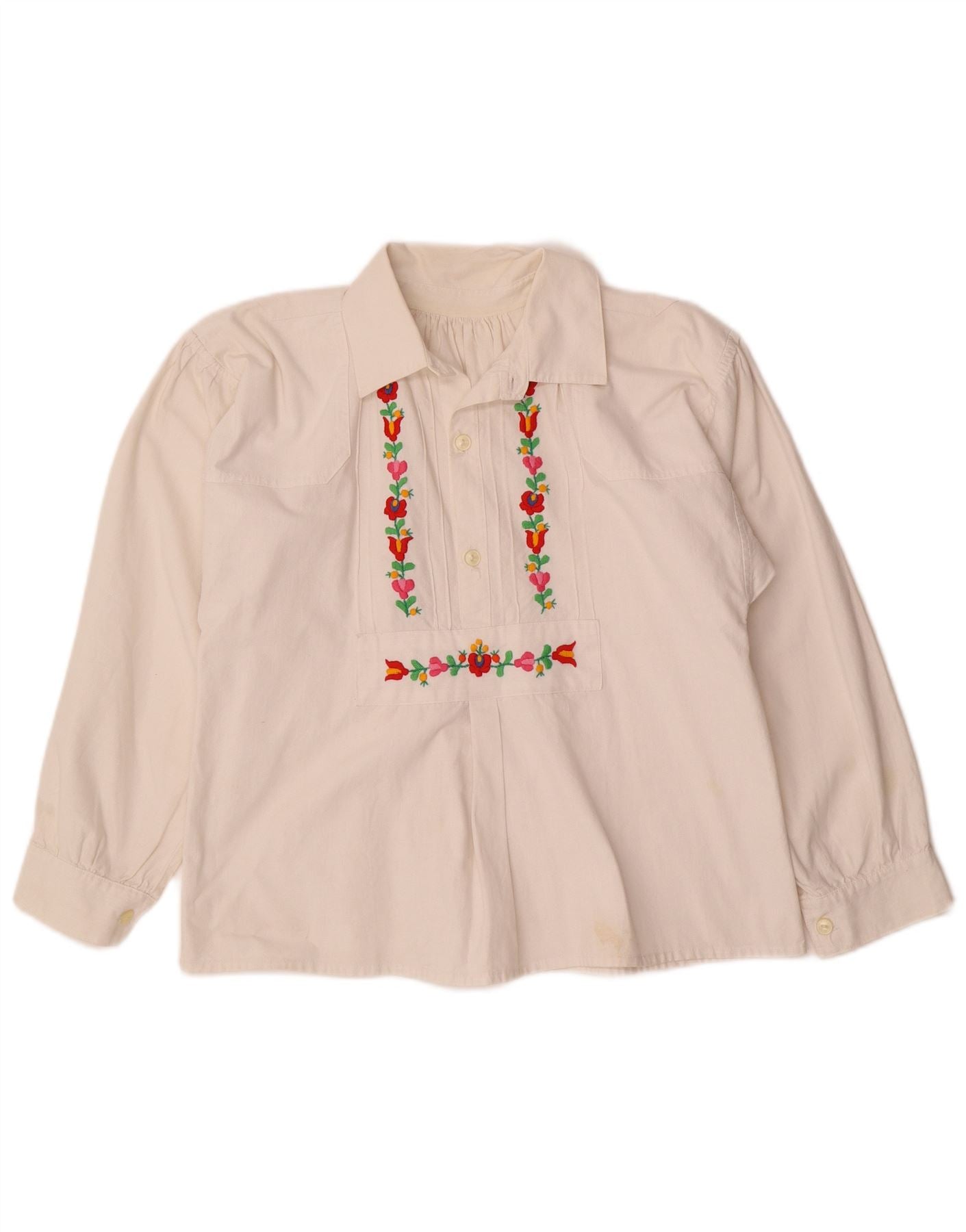 VINTAGE Damen Hemdbluse UK 12 Mittelweiß geblümt