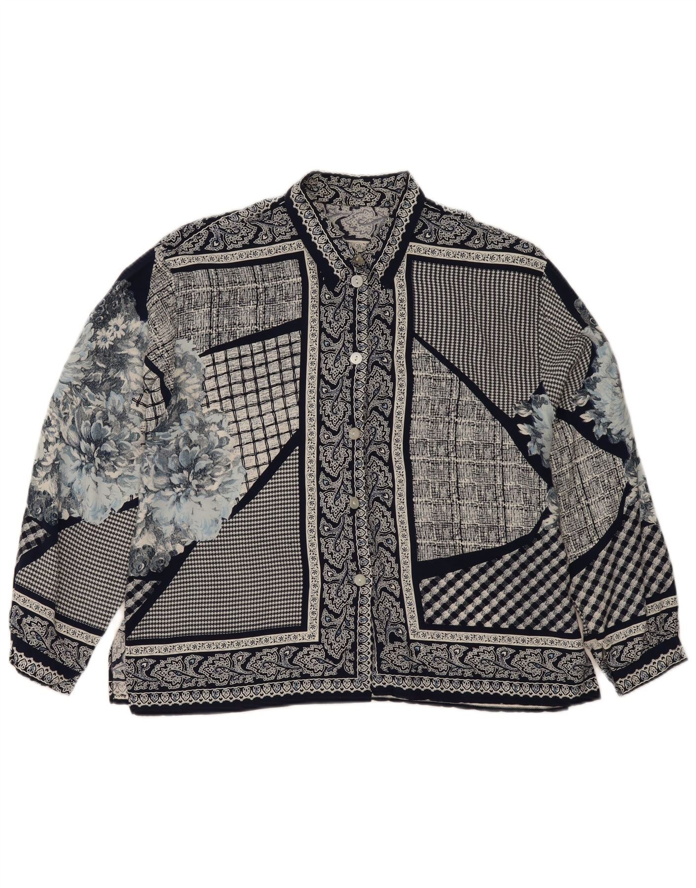 Vintage Damen Hemdbluse UK 14 Großes marineblaues Patchwork