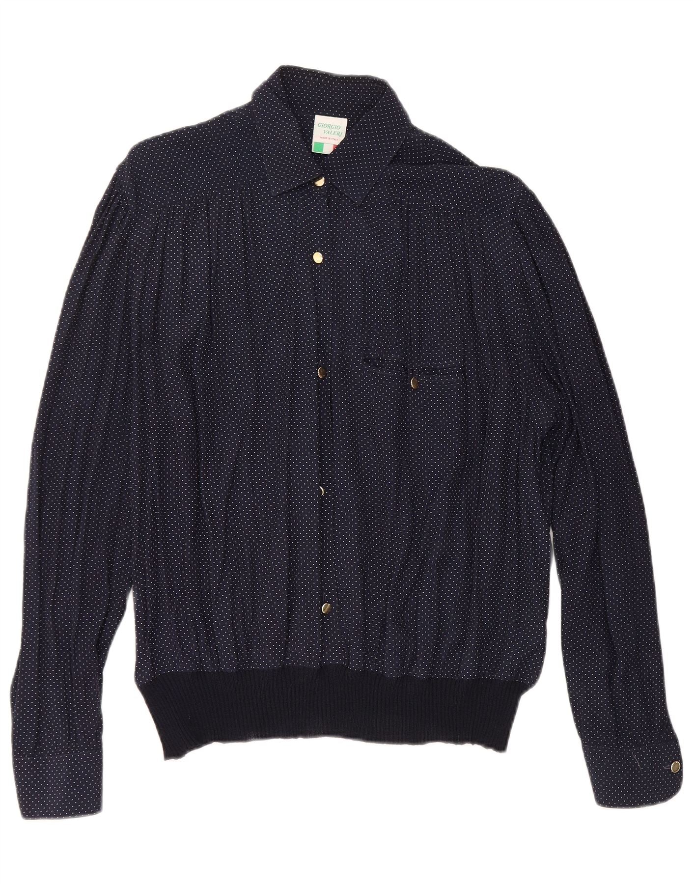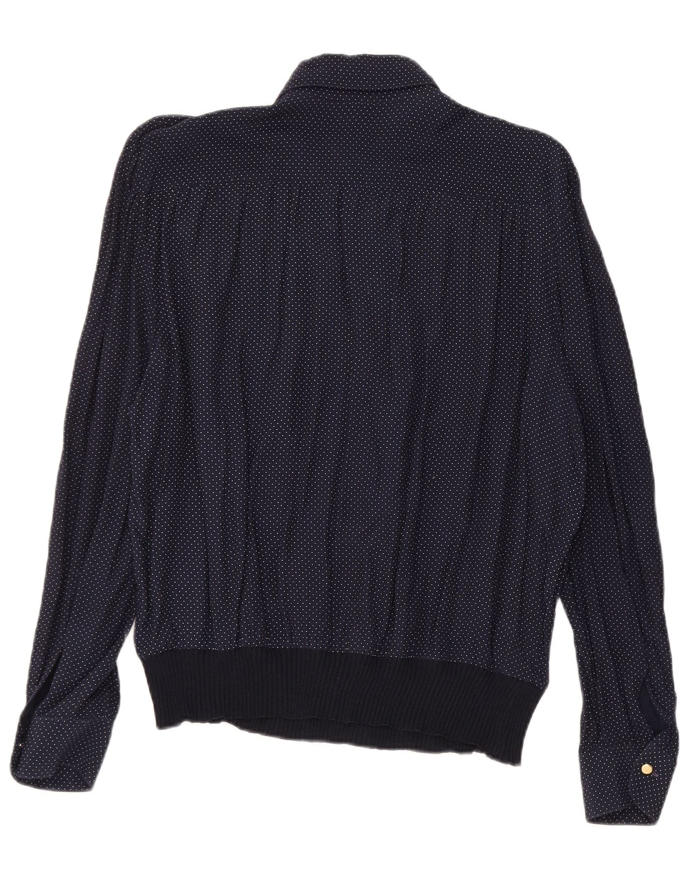 VINTAGE Damen Hemdbluse UK 16 Große marineblau gefleckte Viskose