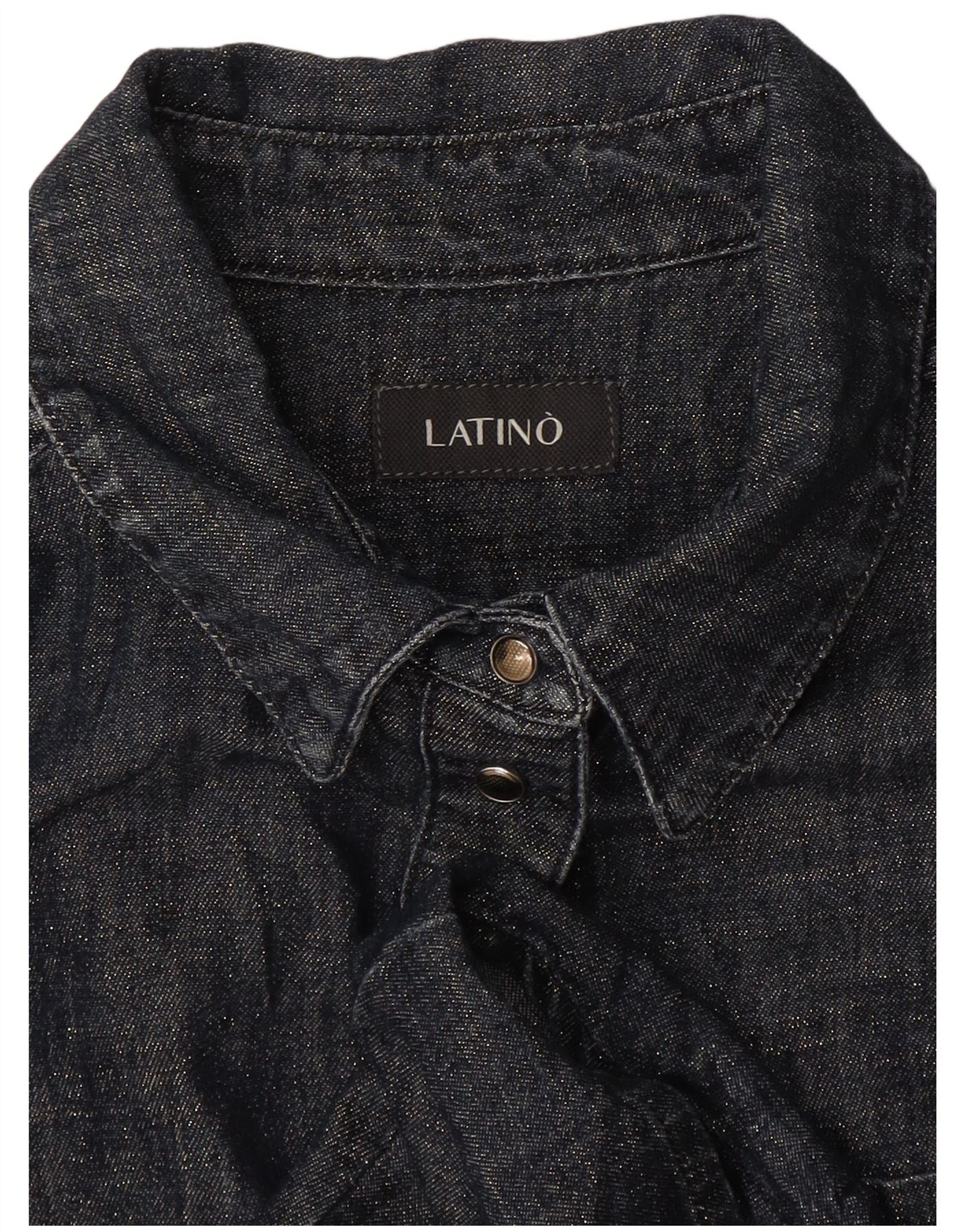 - KI-Beschreibung: Dieses Latino-Jeanshemd für Damen ist aus dunkelblauem Denim gefertigt und bietet eine klassische, strapazierfähige Textur. Es verfügt über einen Kragenausschnitt und lange Ärmel mit Bündchendetails. Die geknöpfte Vorderseite und die Brusttaschen sorgen für funktionalen Stil. Die normale Passform sorgt für angenehmen Tragekomfort und macht es zu einem vielseitigen Basic in der Garderobe. Die farblich abgestimmten Knöpfe sorgen für einen stimmigen Abschluss.