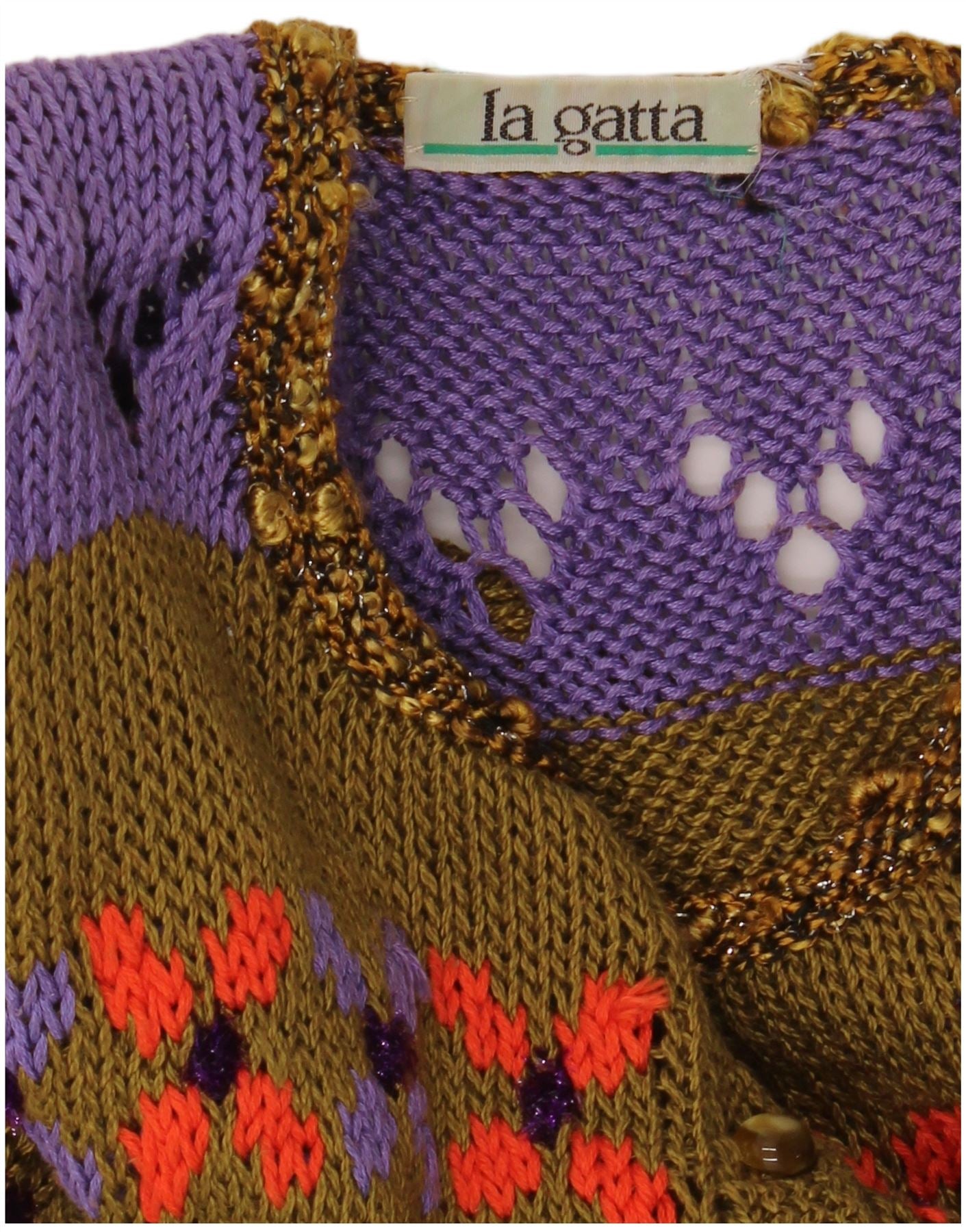 Vintage Damen Kurzarm-Cardigan-Pullover UK 14 Medium Khaki Colourblock