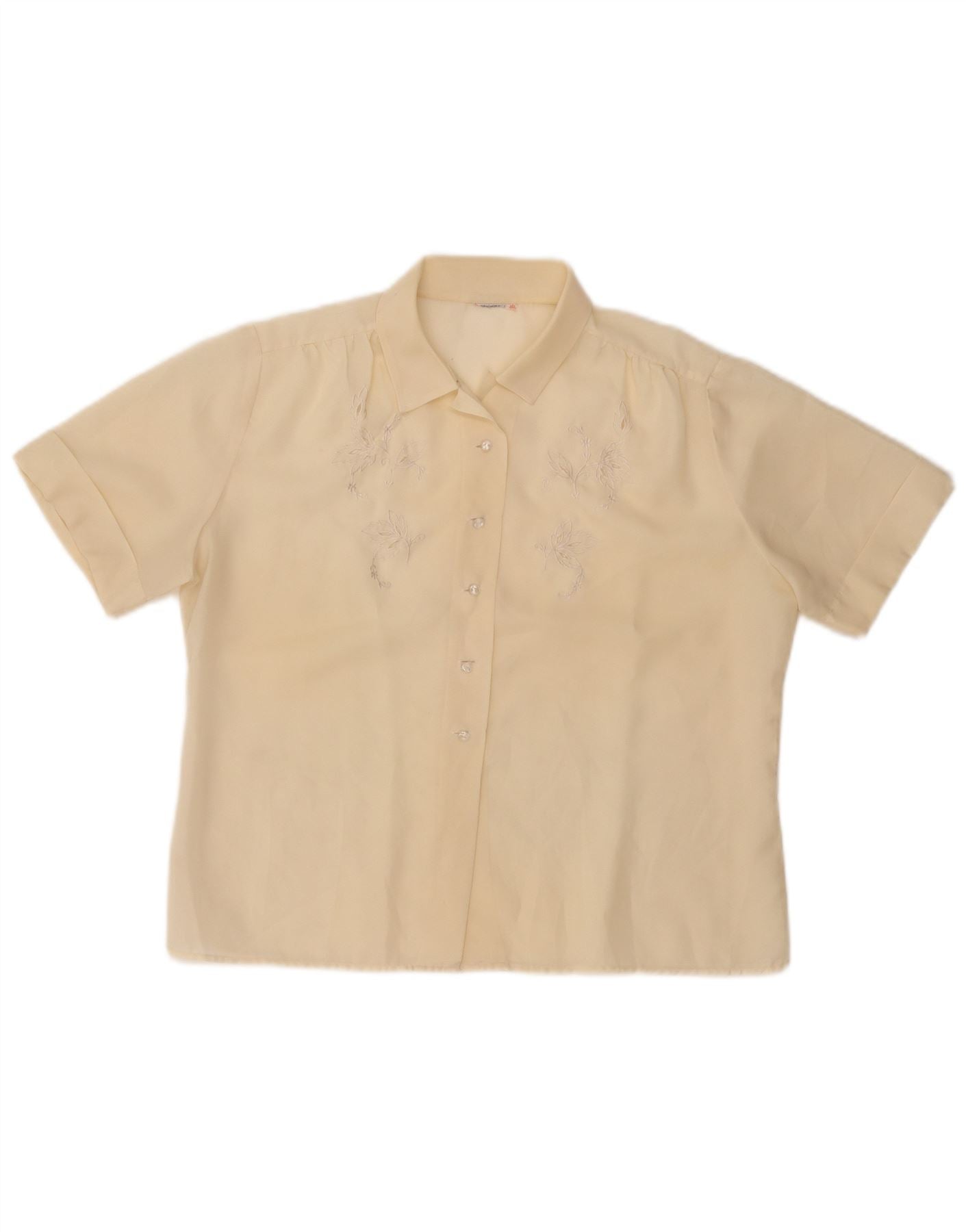 VINTAGE Damen Kurzarm-Hemdbluse UK 14 Mittelgelb geblümt