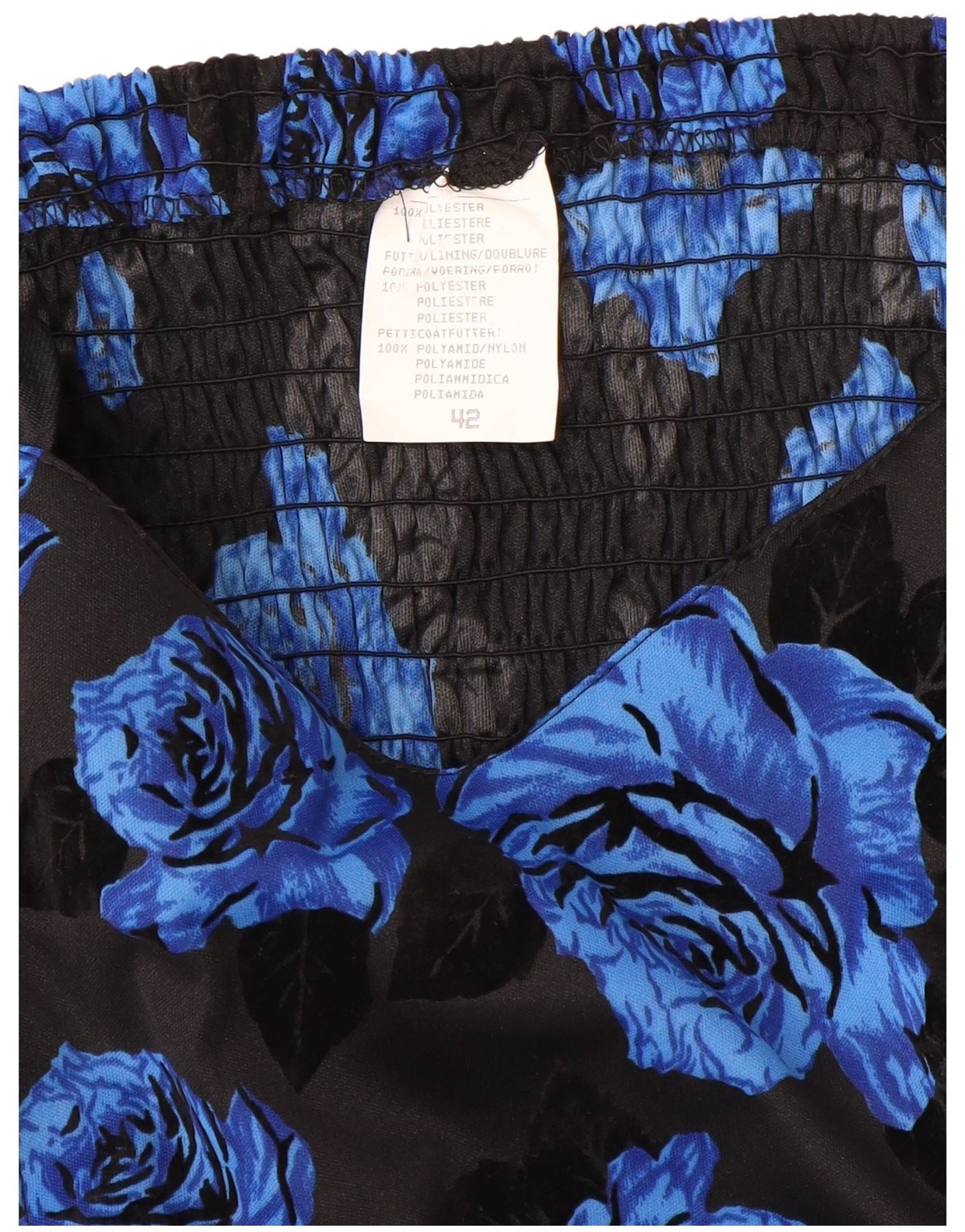 VINTAGE Damen Ärmelloses A-Linien-Kleid IT 42 Mittelblaues Blumenmuster aus Polyester