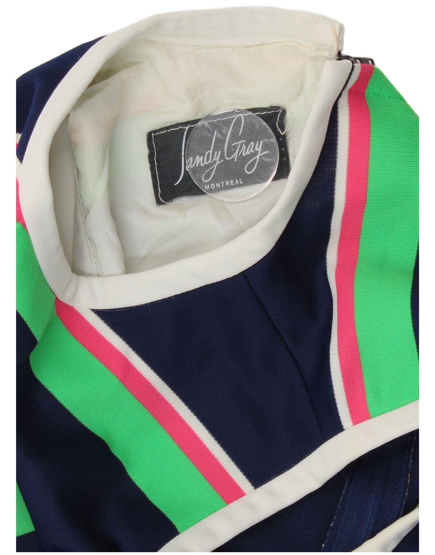 Vintage Damen Ärmelloses A-Linien-Kleid UK 12 Mittel Marineblau gestreift