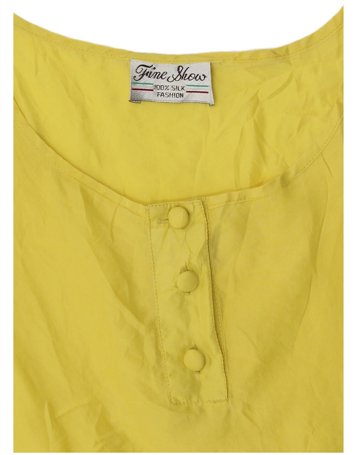 Vintage Damen Ärmelloses Blusentop UK 14 Mittelgelbe Seide