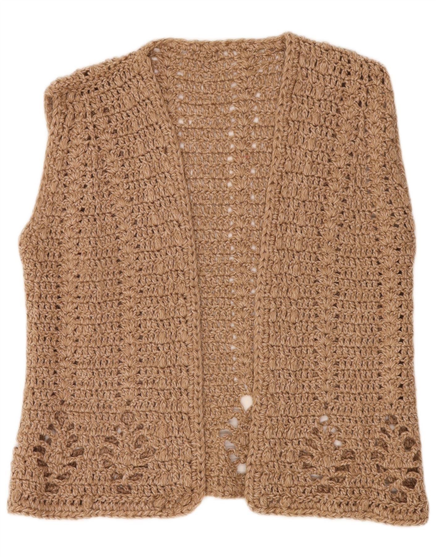 VINTAGE Damen Ärmelloser Häkel-Cardigan-Pullover UK 14 Large Beige