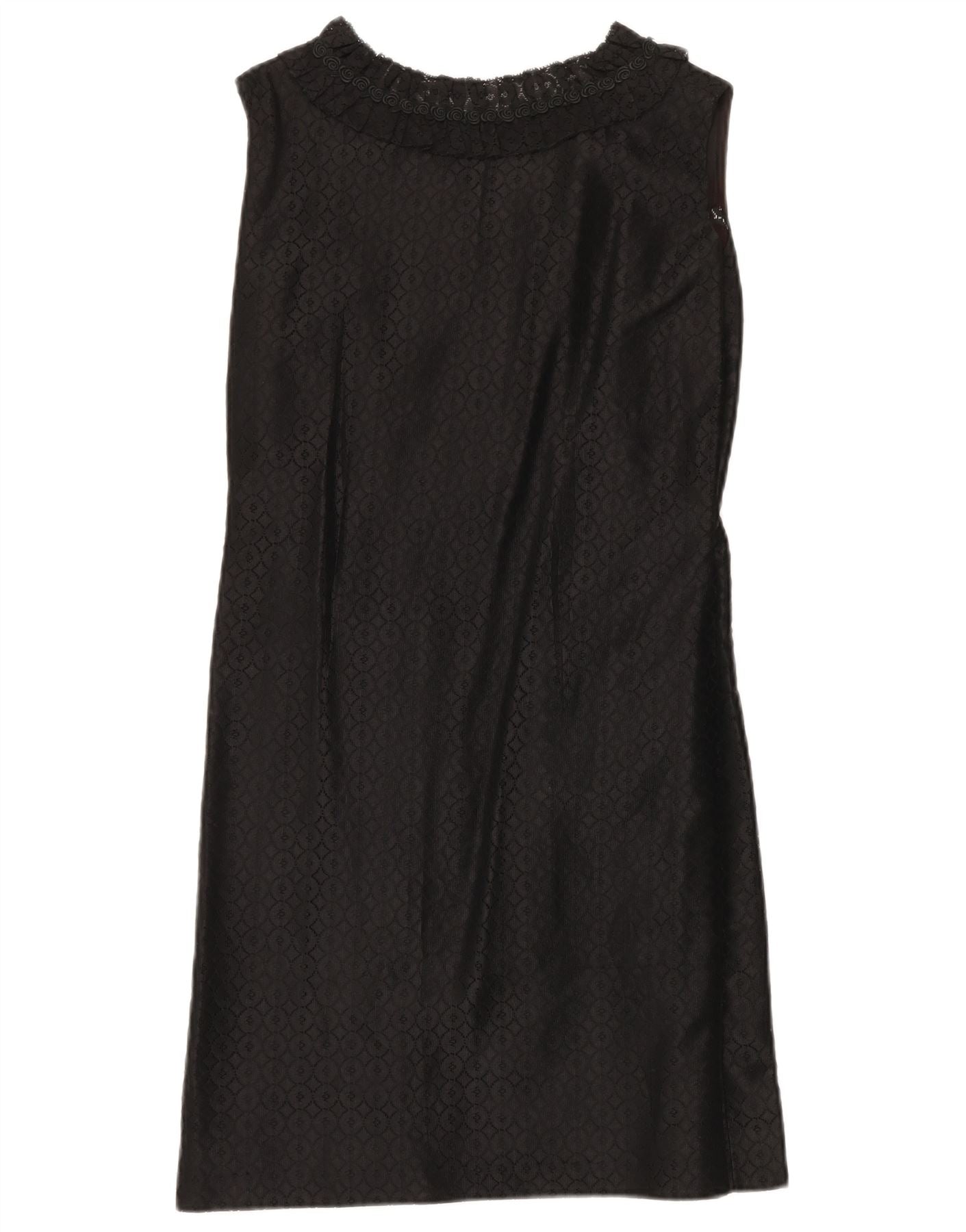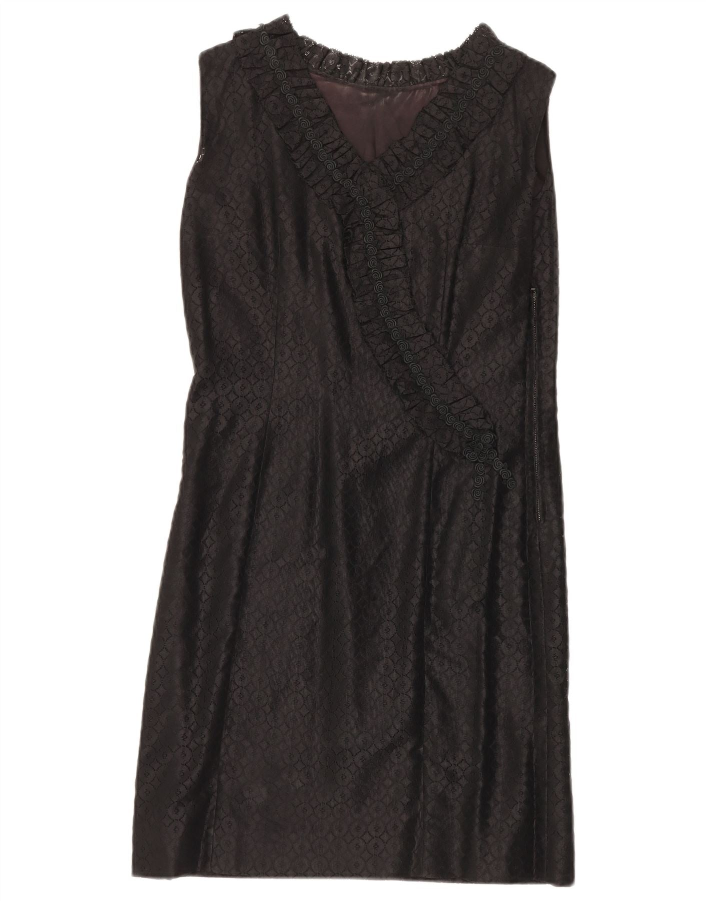 VINTAGE Damen Ärmelloses Spitzen-Etuikleid UK 12 Mittelschwarz geblümt