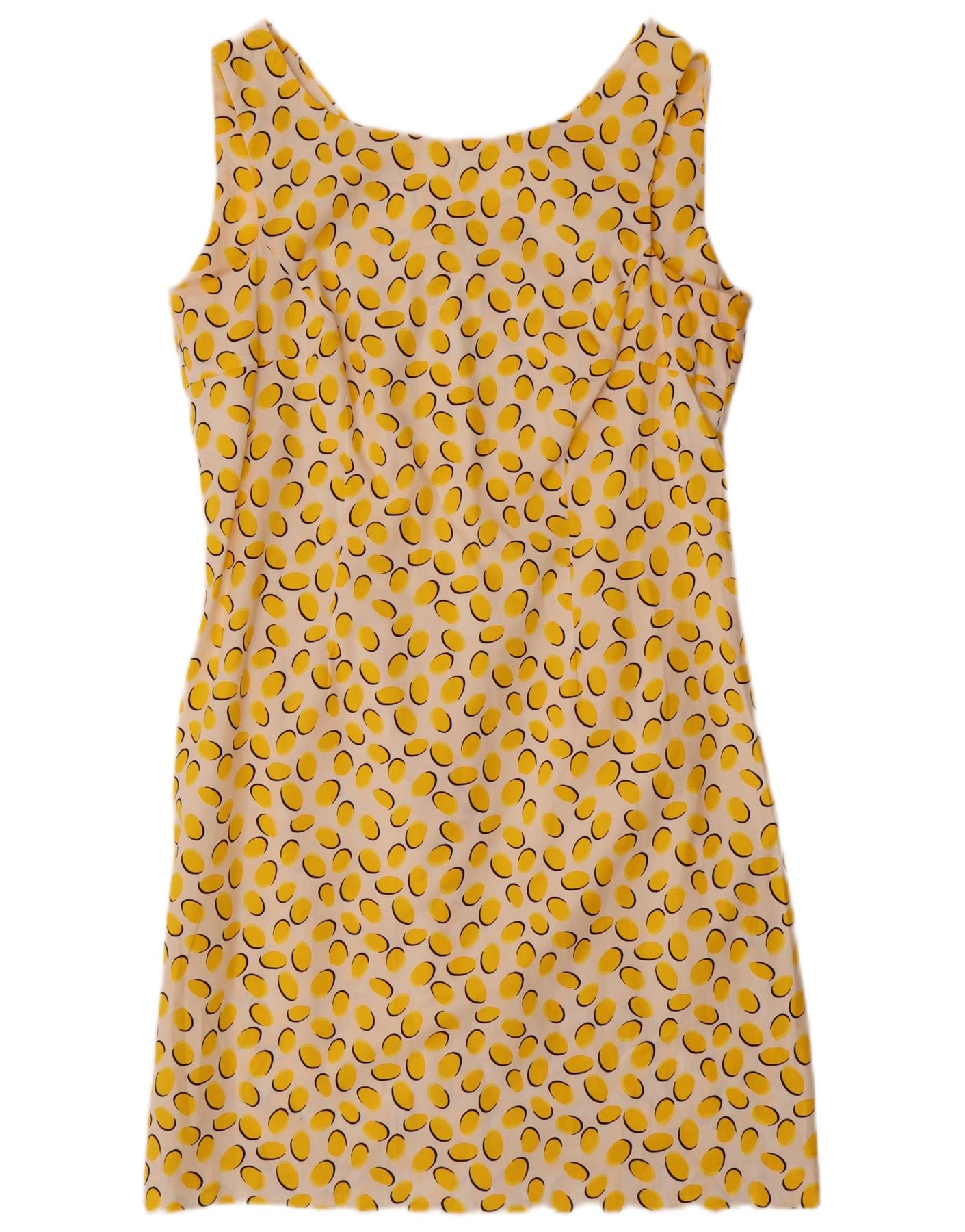 VINTAGE Damen Ärmelloses Etuikleid UK 20 2XL Gelb gefleckte Baumwolle