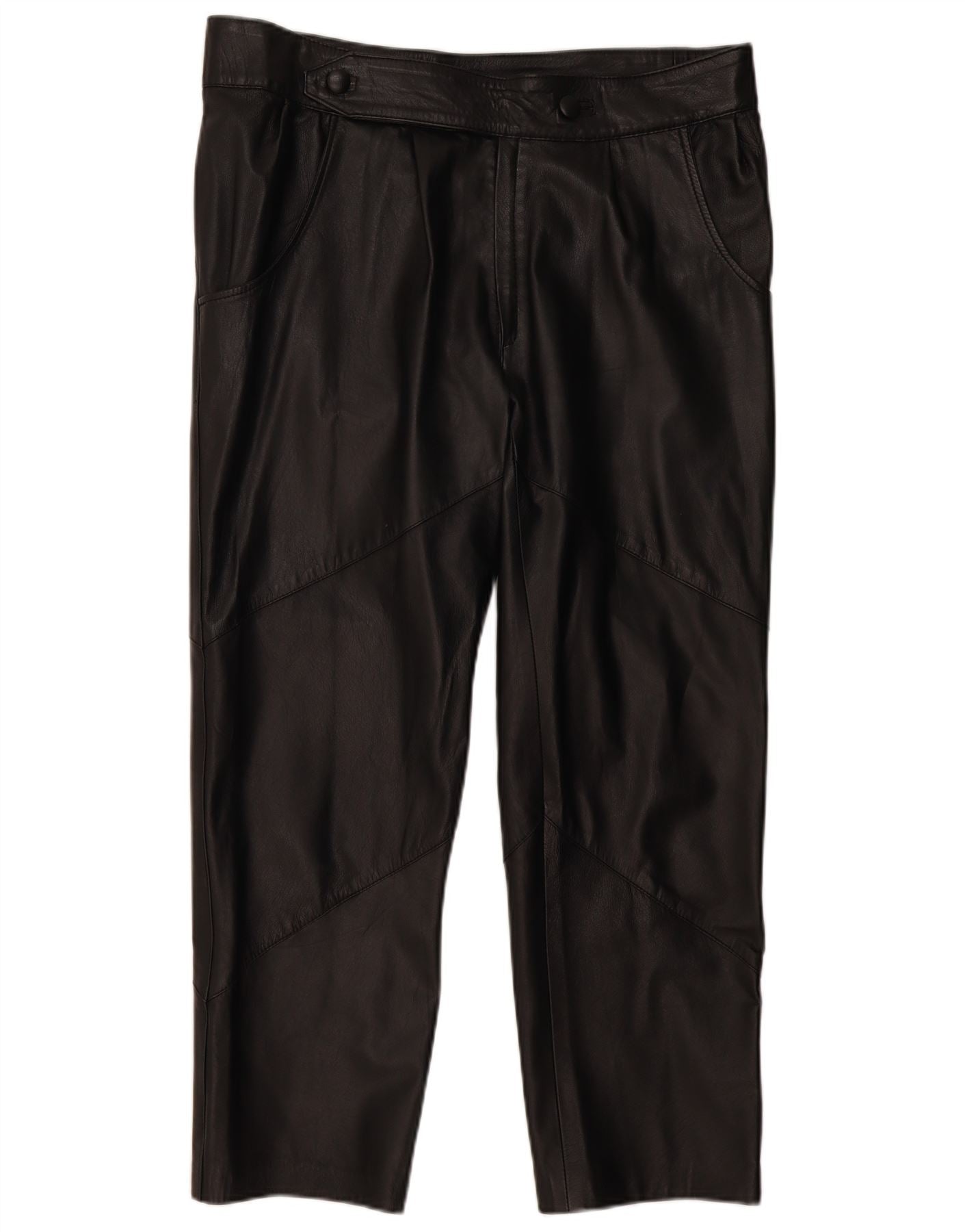VINTAGE Damen gerade Lederhose IT 50 Large W38 L29 Schwarz