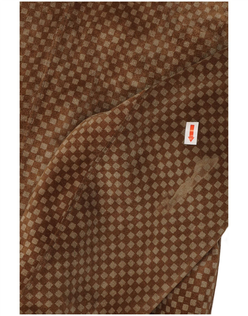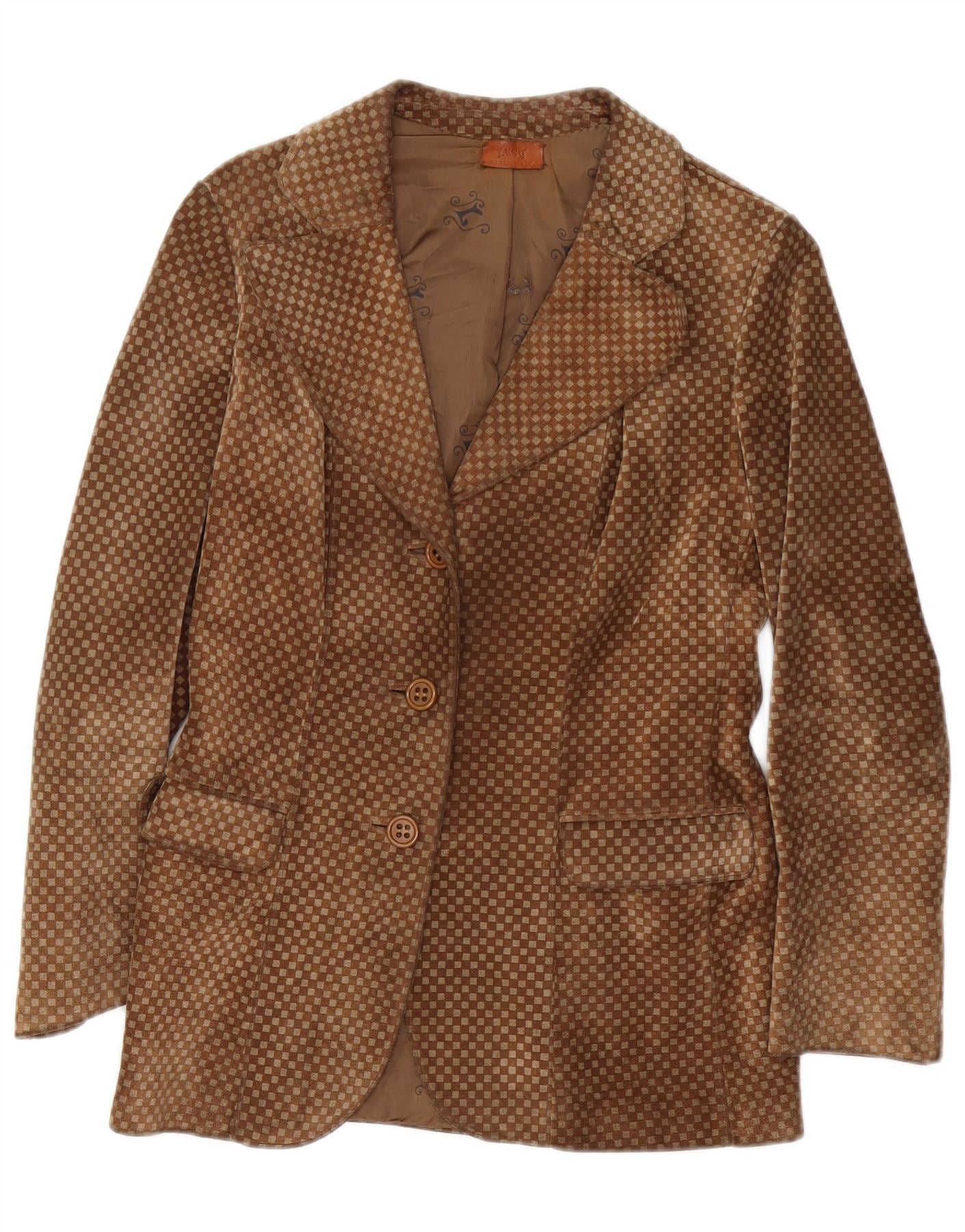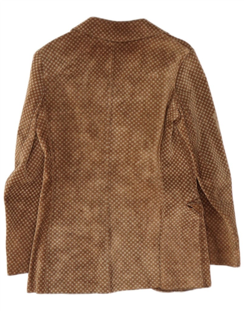 VINTAGE Damen-Blazerjacke aus Wildleder mit 3 Knöpfen, Gr. 10, klein, braun, geometrisch
