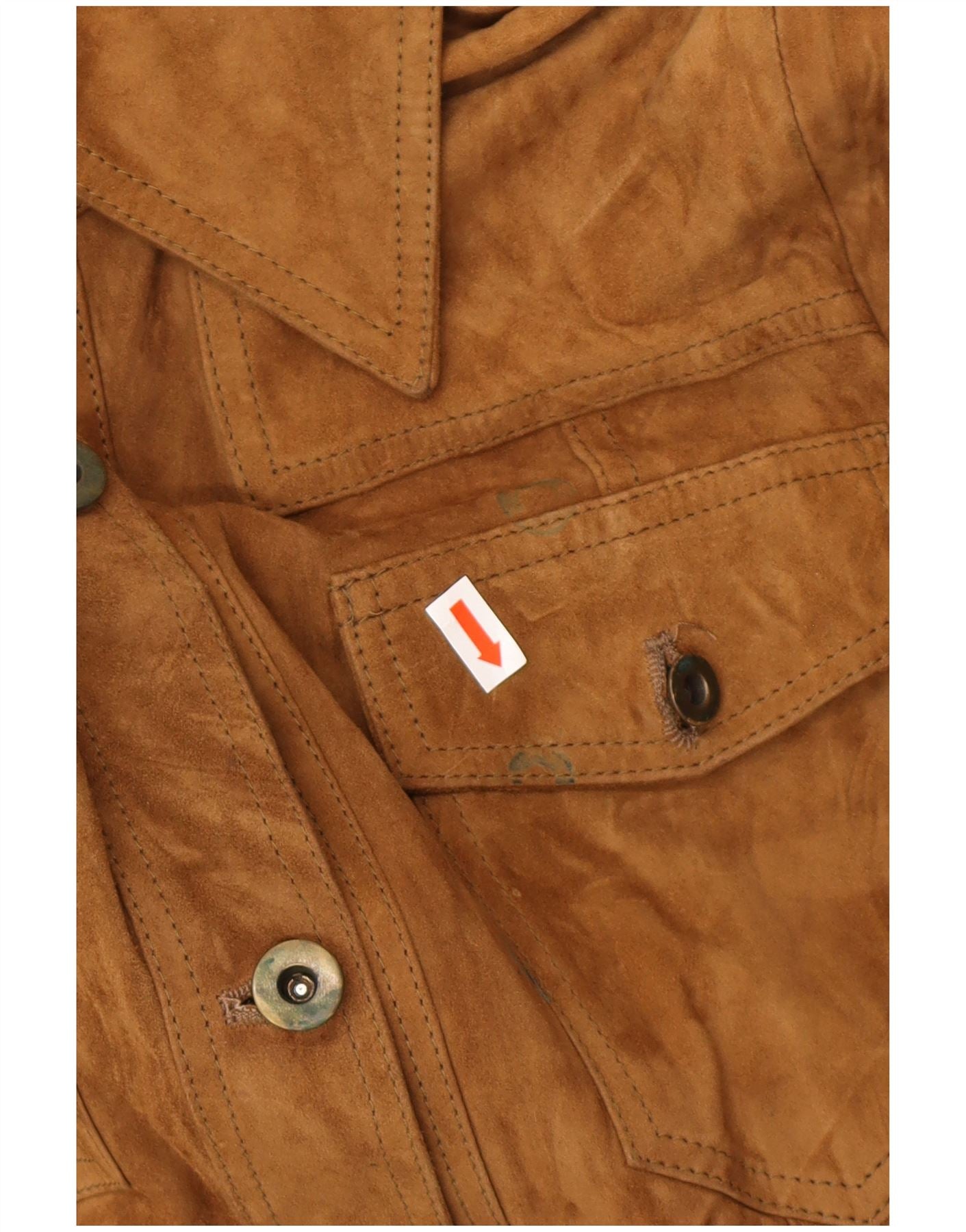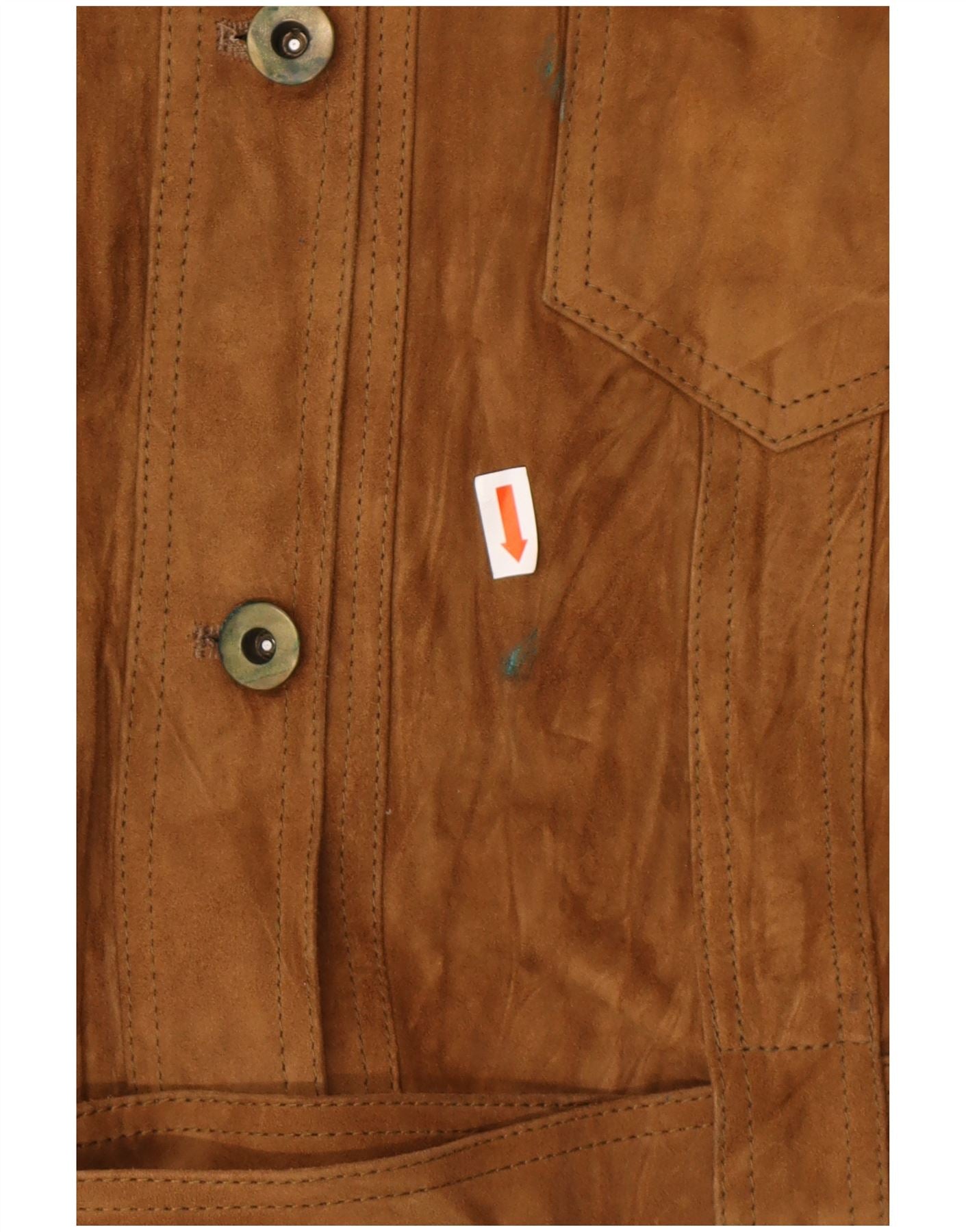 VINTAGE Damen Shearling Gilet EU 36 Kleines braunes Patchwork-Leder