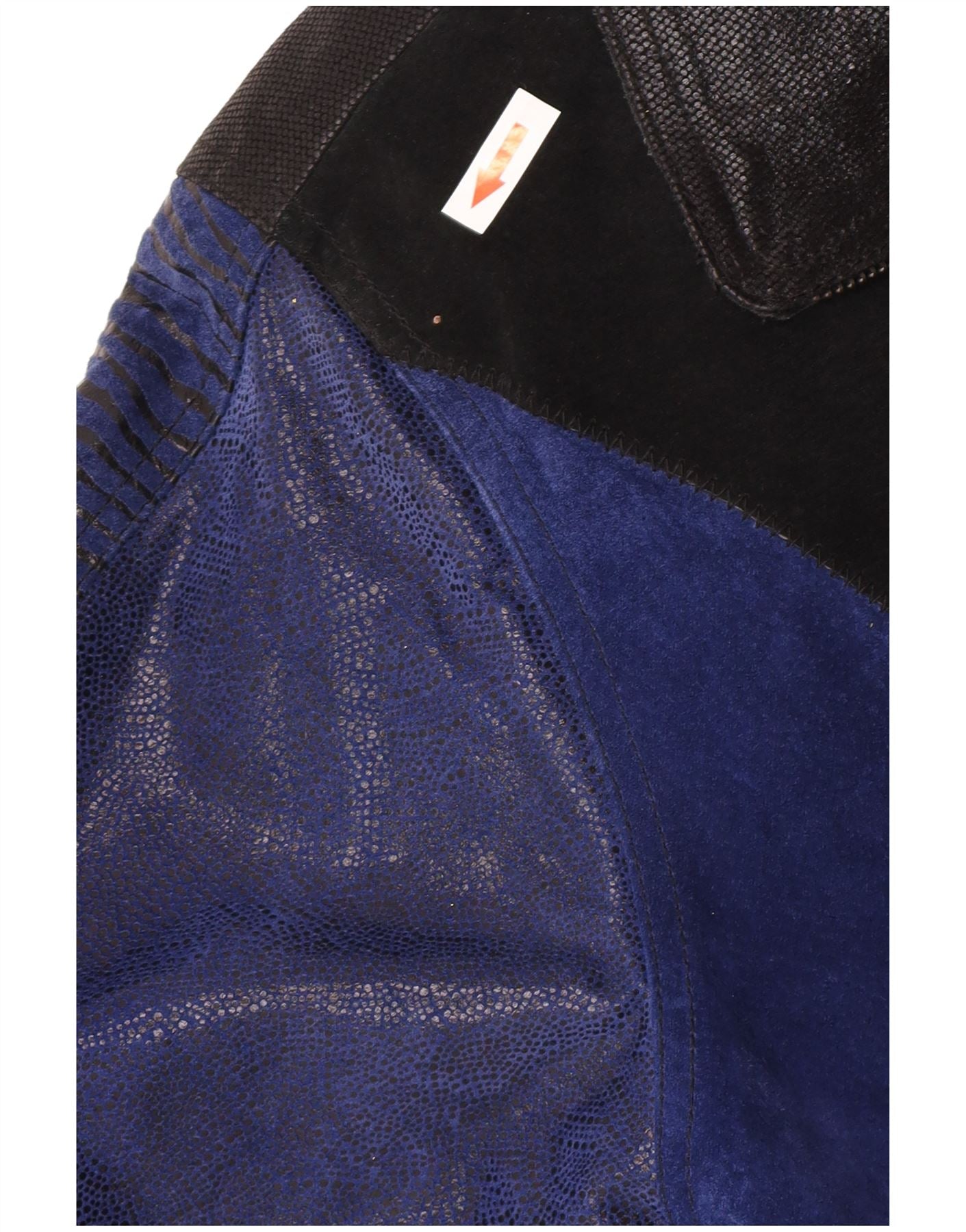 - KI-Beschreibung: Diese Vintage-Lederjacke für Damen ist aus echtem Leder gefertigt und weist ein auffälliges Patchwork aus blauen und schwarzen Einsätzen auf. Zu den verschiedenen Texturen gehören Glattleder, wildlederartige Oberflächen und geprägte Muster. Es hat einen Kragenausschnitt und lange Ärmel. Der durchgehende Reißverschluss verläuft vorne entlang. Eine entspannte Passform sorgt für angenehmen Tragekomfort. Das auffällige Patchwork-Design sorgt für eine Retro-Ästhetik. Es ist vollständig gefüttert und verfügt über praktische Taschen.