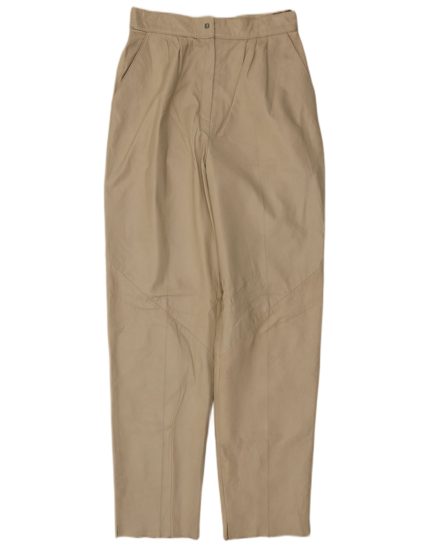 VINTAGE Damen Tapered Lederhose W26 L30 Beige