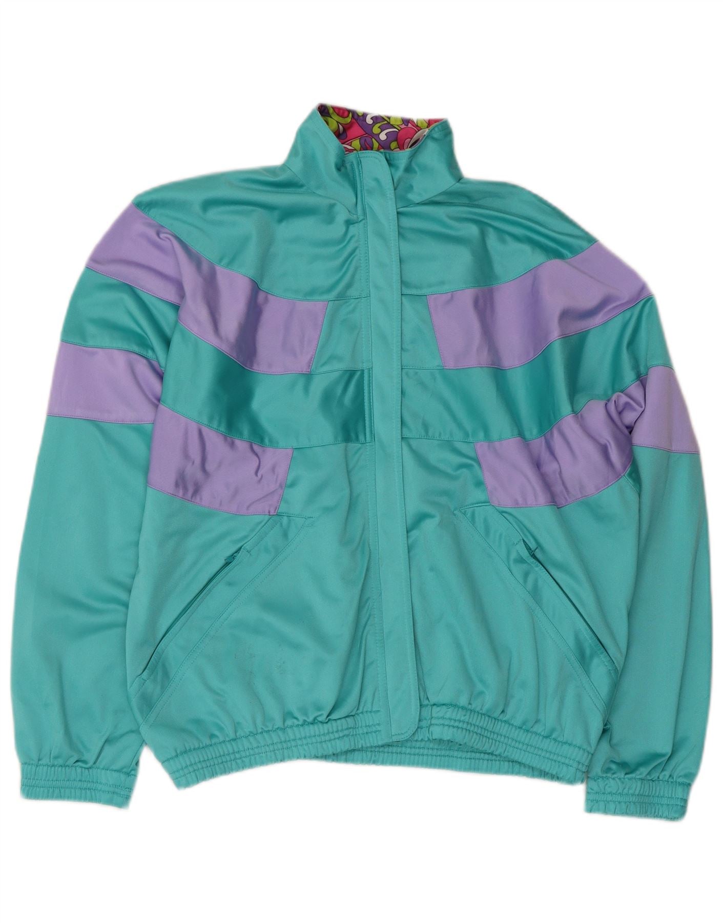 VINTAGE Damen-Trainingsanzug-Top-Jacke UK 18 XL Türkis-Farbblock