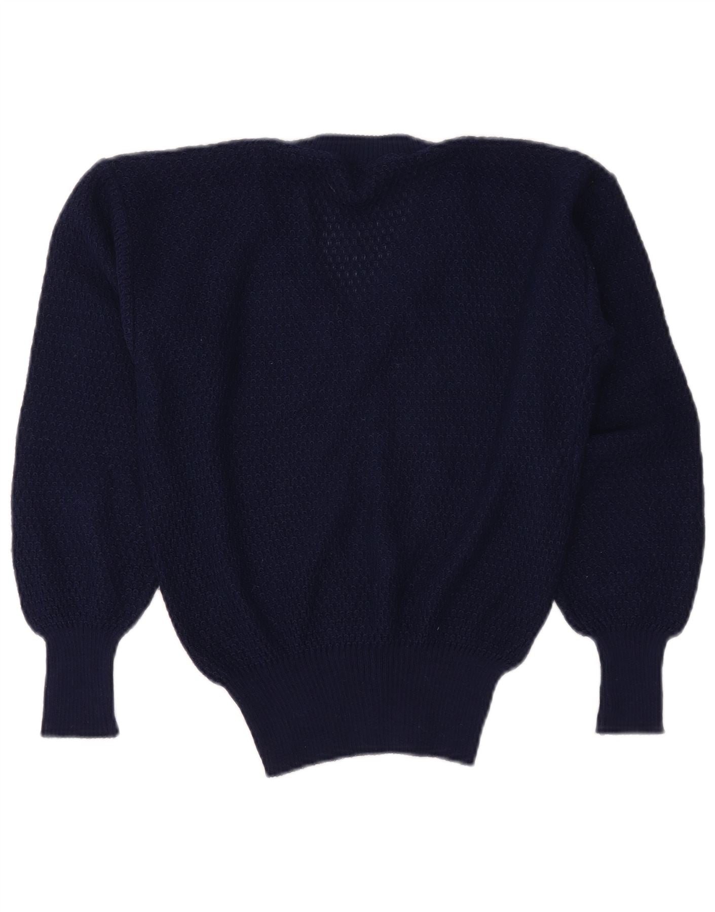 VINTAGE Damen Pullover mit V-Ausschnitt IT 46 Großes Marineblaues Acryl