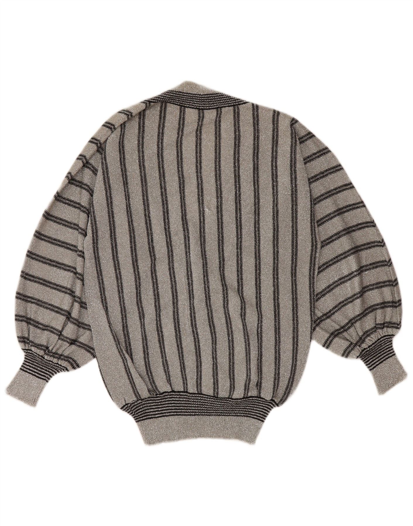 VINTAGE Damen-Pullover mit V-Ausschnitt, UK 12, mittelgrau gestreift, Synthetik