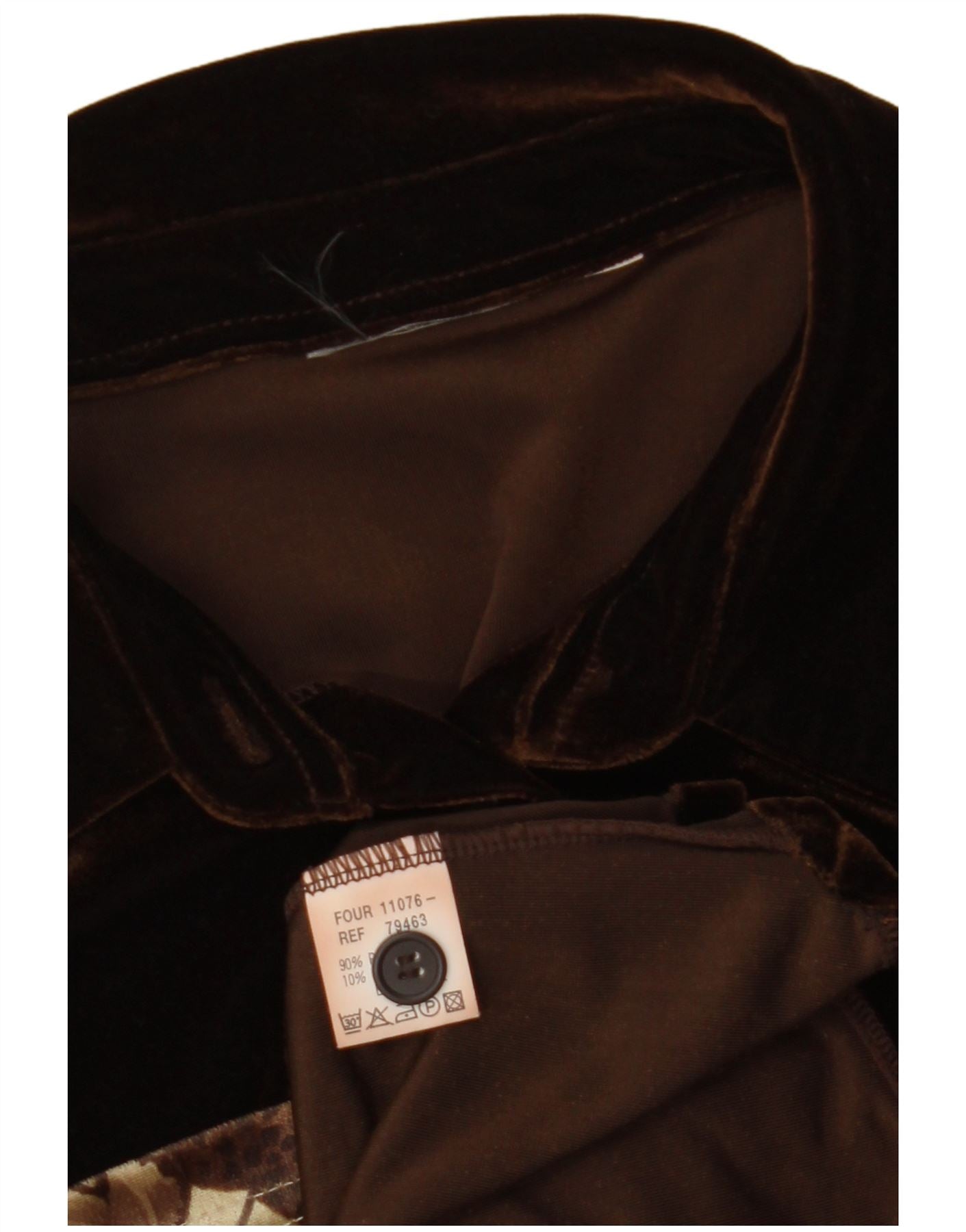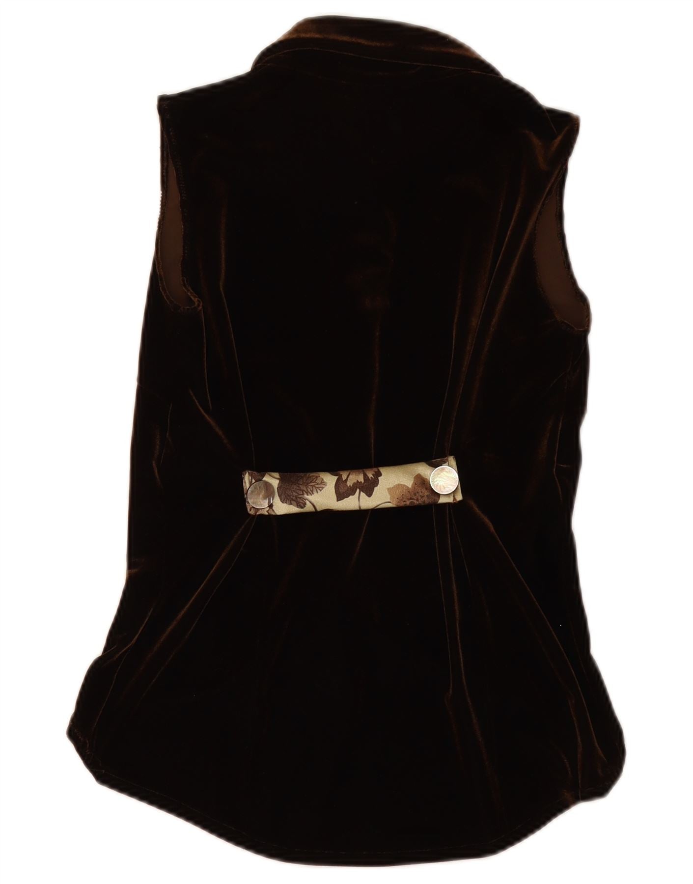 VINTAGE Damen Velours ärmellose Hemdbluse UK 12 Mittelbraun geblümt