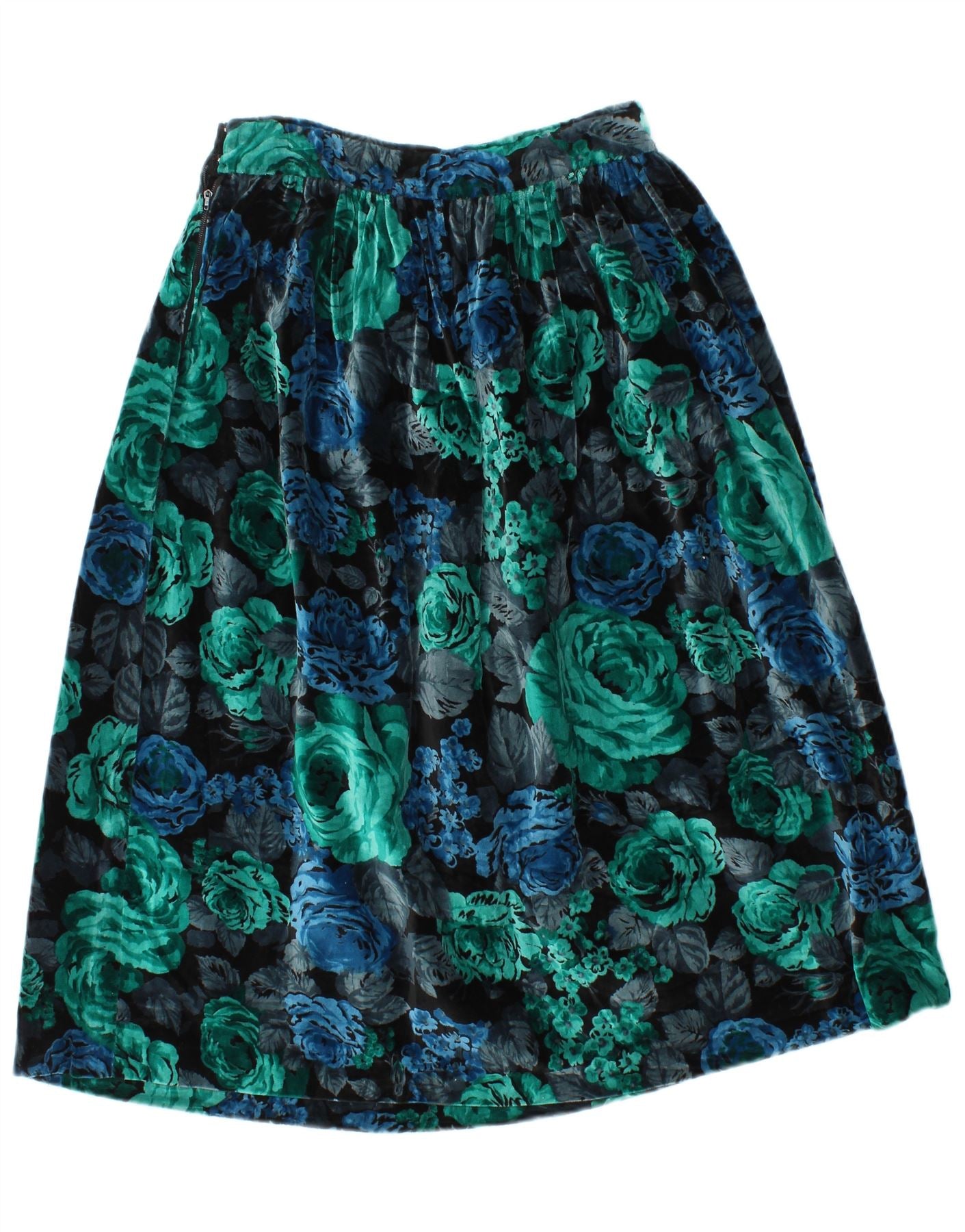 Vintage Damen-Samt-A-Linien-Rock W28 Medium Mehrfarbig geblümt