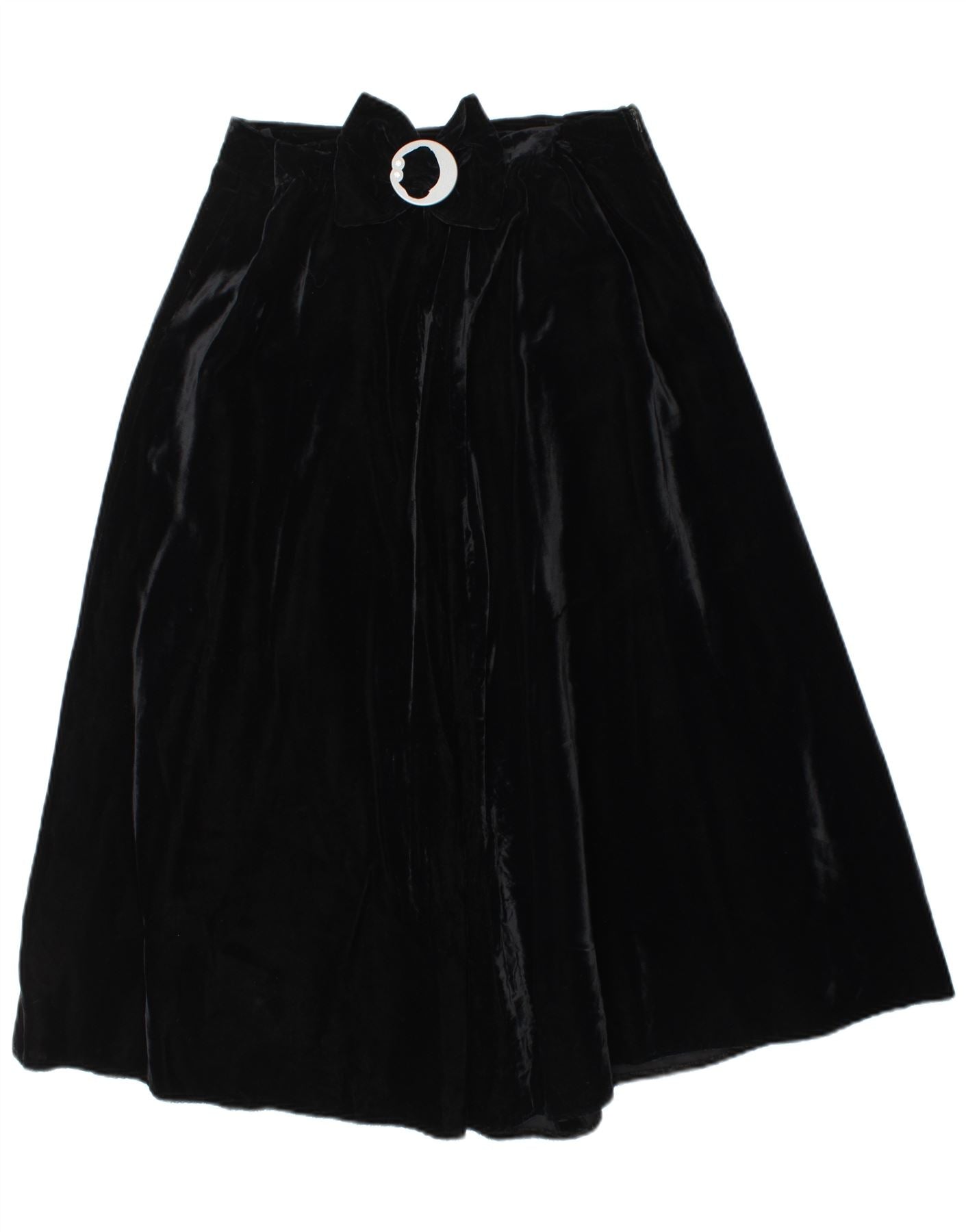 VINTAGE Damen Samtrock mit hoher Taille und ausgestelltem Rock IT 44 Medium W28 Schwarz