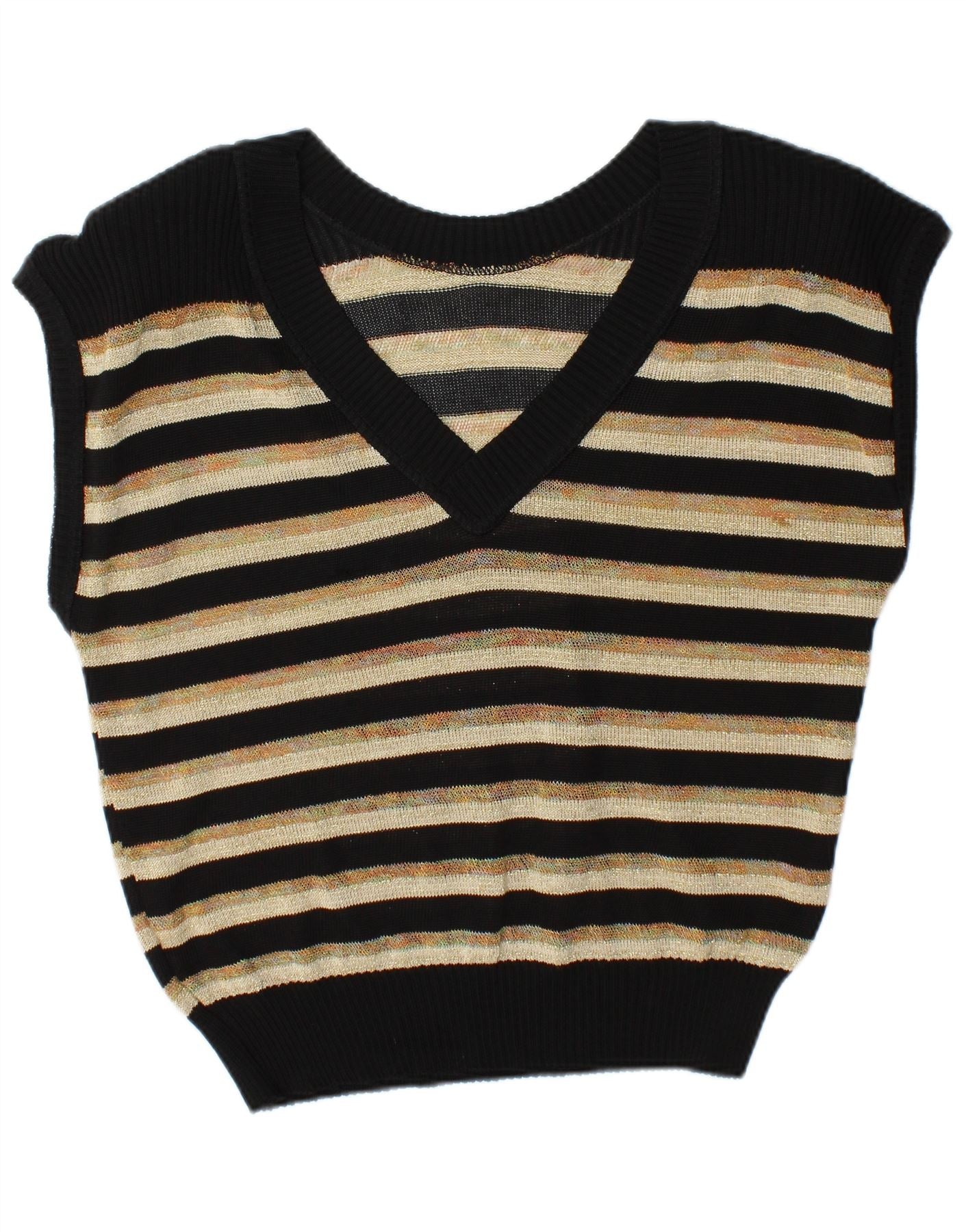 VINTAGE Damen Weste Tank Top UK 16 Große schwarz gestreifte Baumwolle