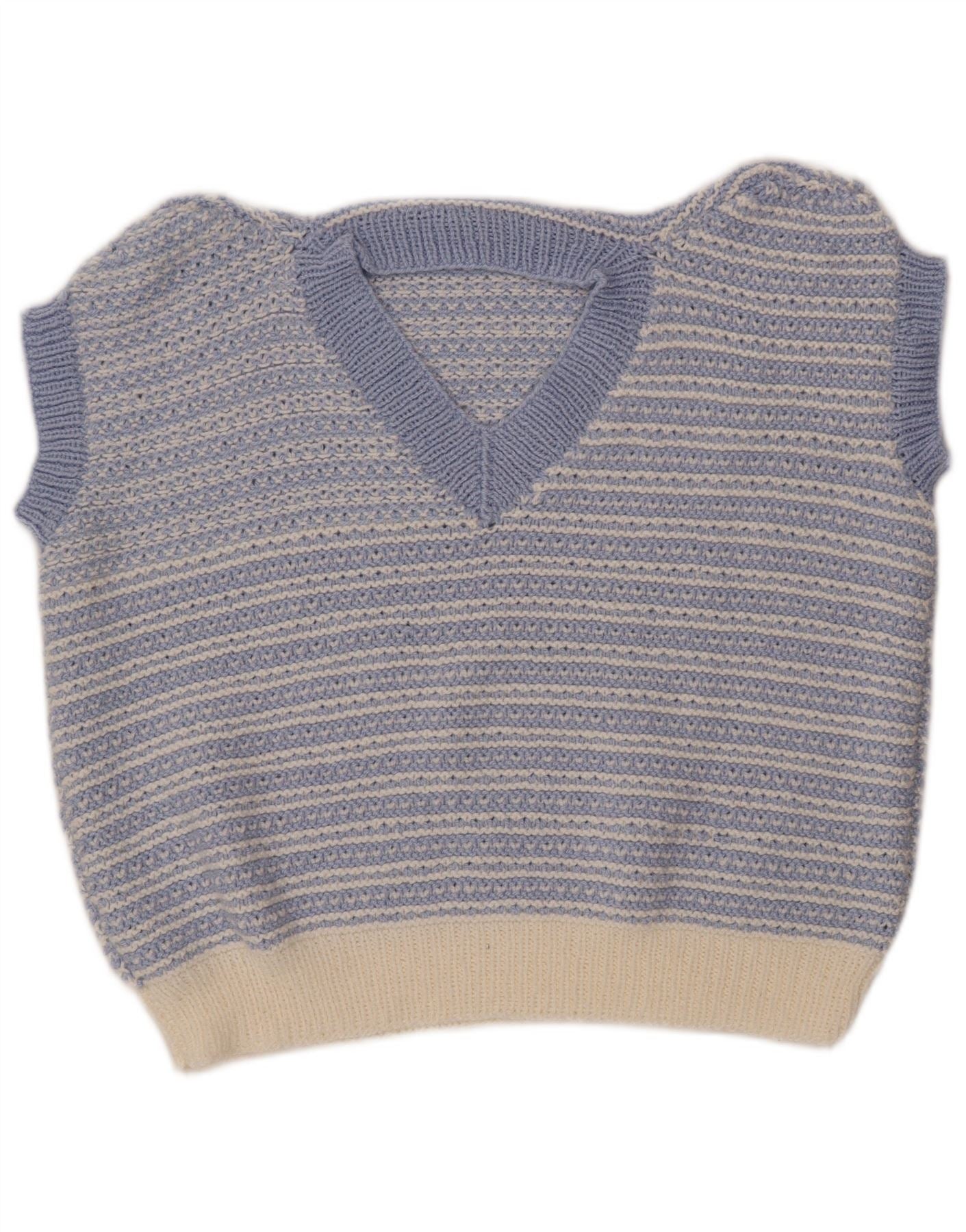 VINTAGE Damen Weste Tank Top UK 18 XL Blau gestreift