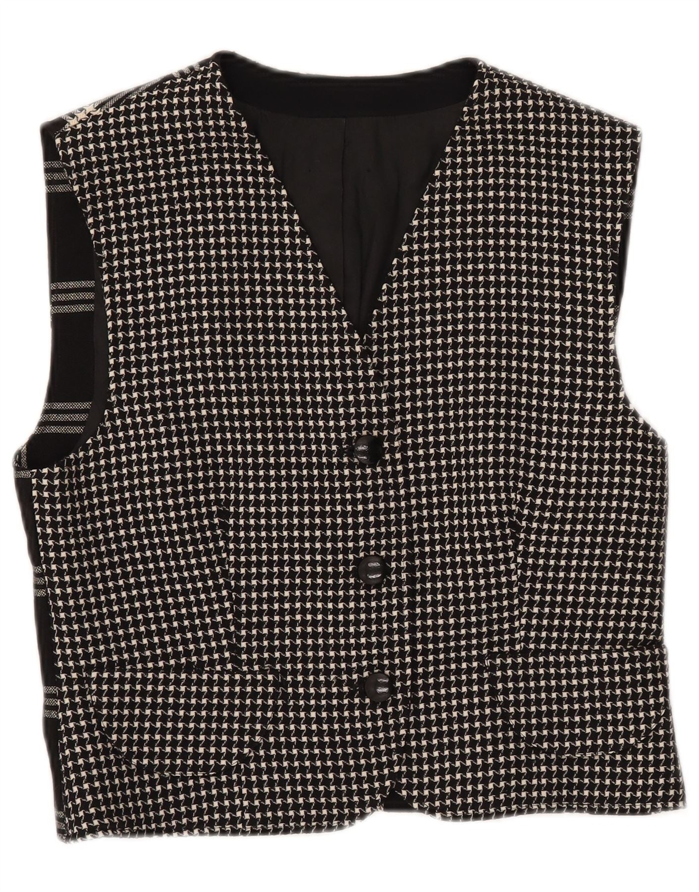 VINTAGE Damen Weste UK 12 Mittelschwarz kariert