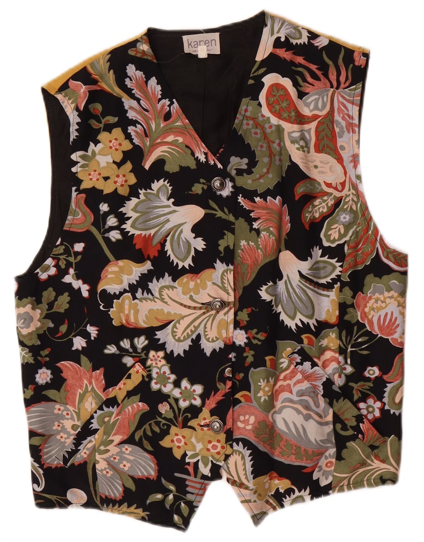 VINTAGE Damen Weste UK 14 Medium Mehrfarbig Floral Acetat