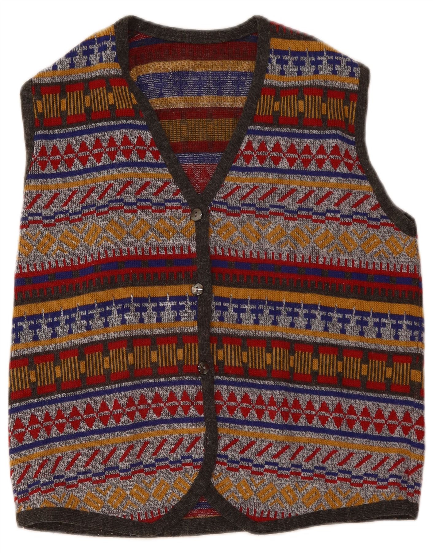 VINTAGE Damen Weste UK 16 Groß Mehrfarbig Fair Isle