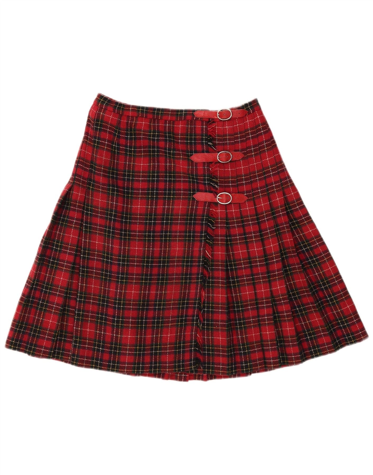 VINTAGE Damen Wickelmesser-Faltenrock W28 Mittelrot kariert