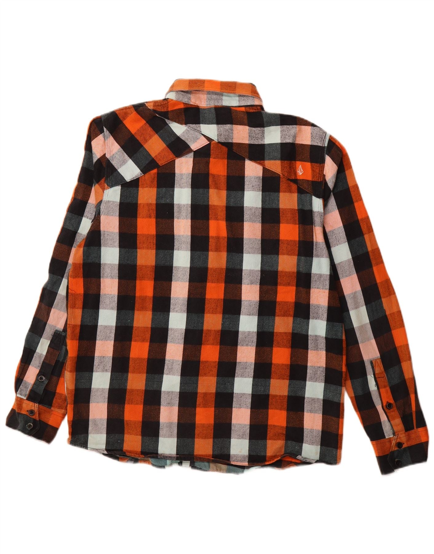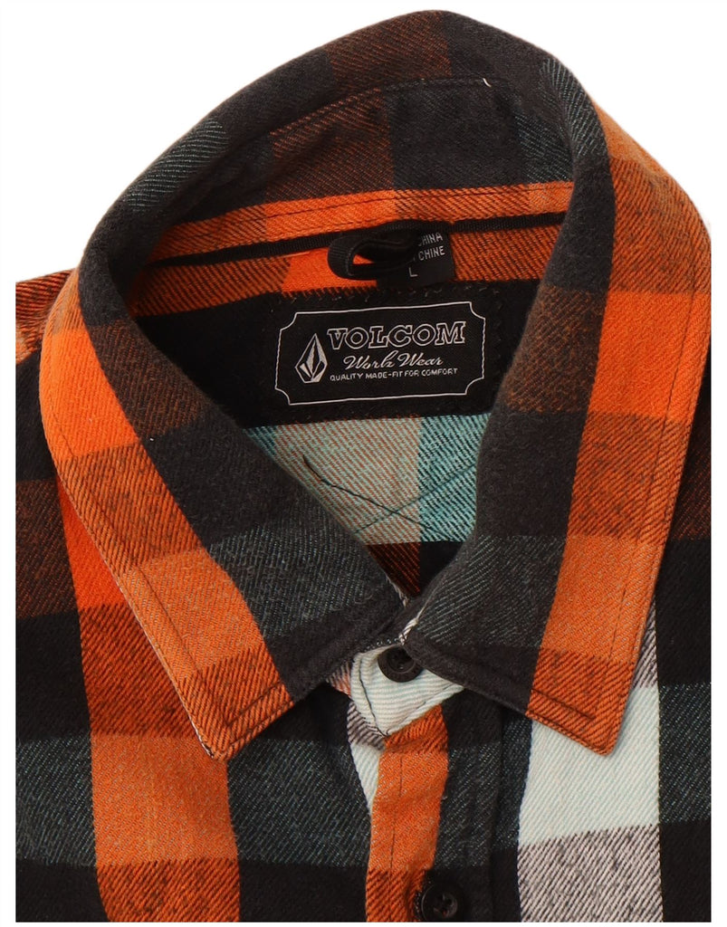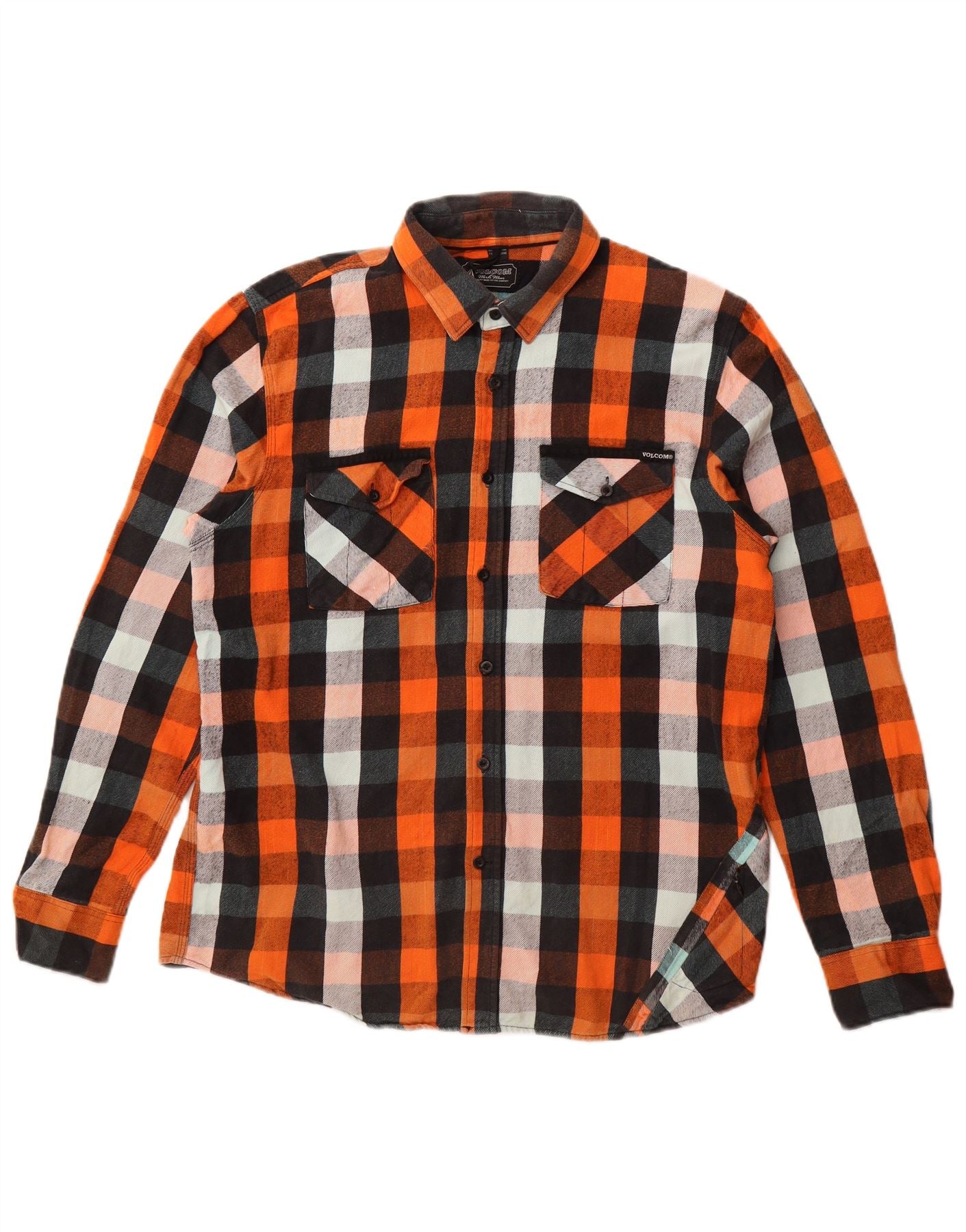 - AI Description: This Volcom mens flannel shirt features a vibrant orange plaid pattern woven in soft flannel. The collared neckline and full button-up front offer a classic, smart casual look. Long sleeves with buttoned cuffs provide a neat finish. It includes practical chest pockets for added utility. The regular fit ensures comfortable wear and a timeless silhouette.