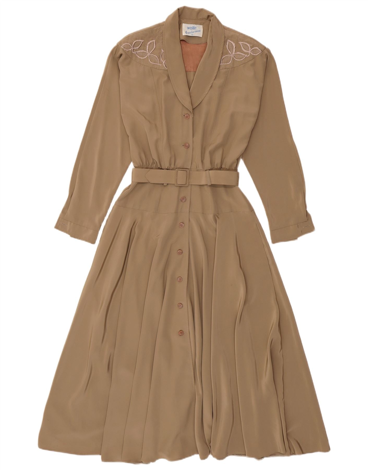 WALLIS Damen Langarm-Maxikleid US 8 Medium Beige