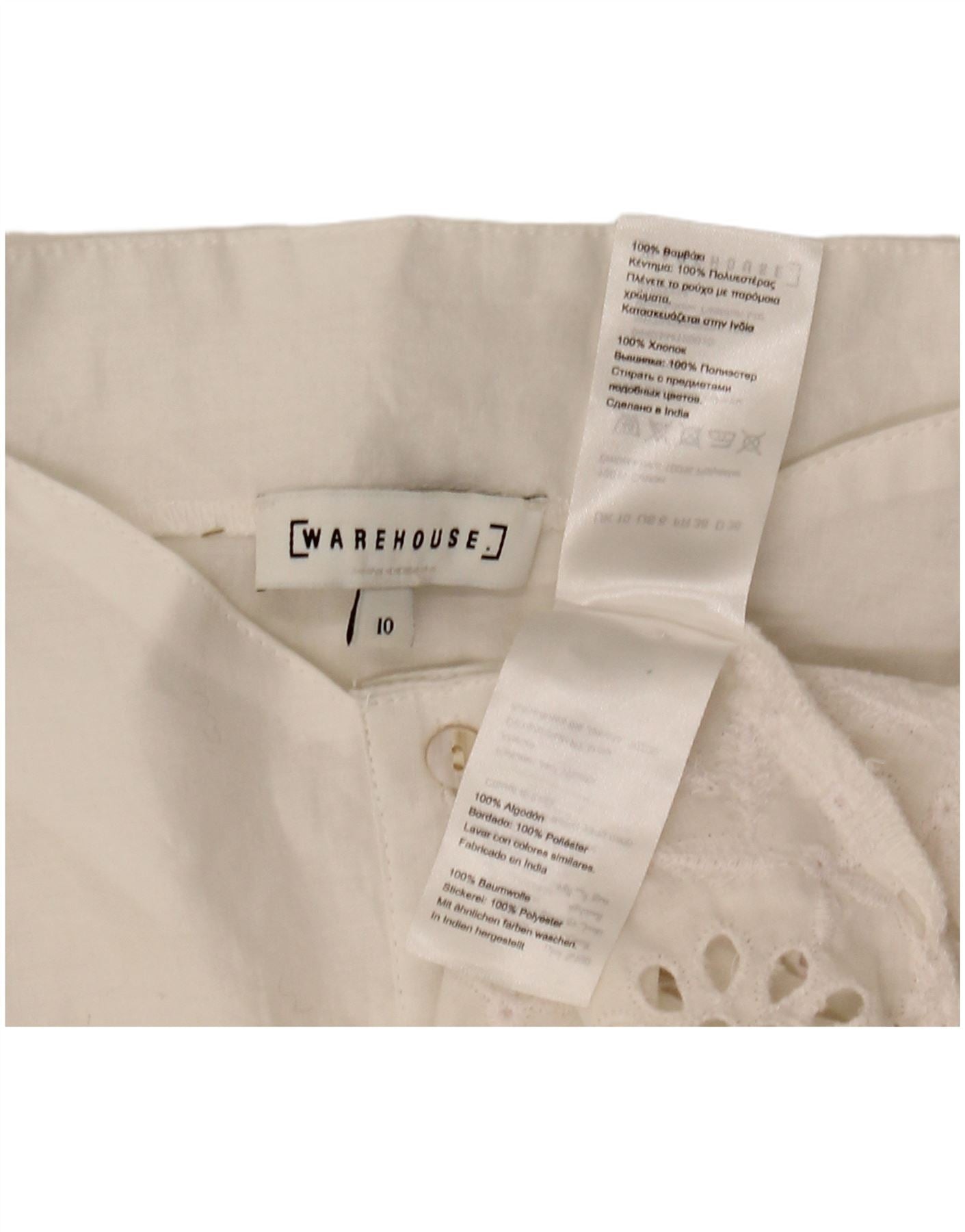 WAREHOUSE Damen Kurzarm-Hemdbluse UK 10 Small Weiß Polyester