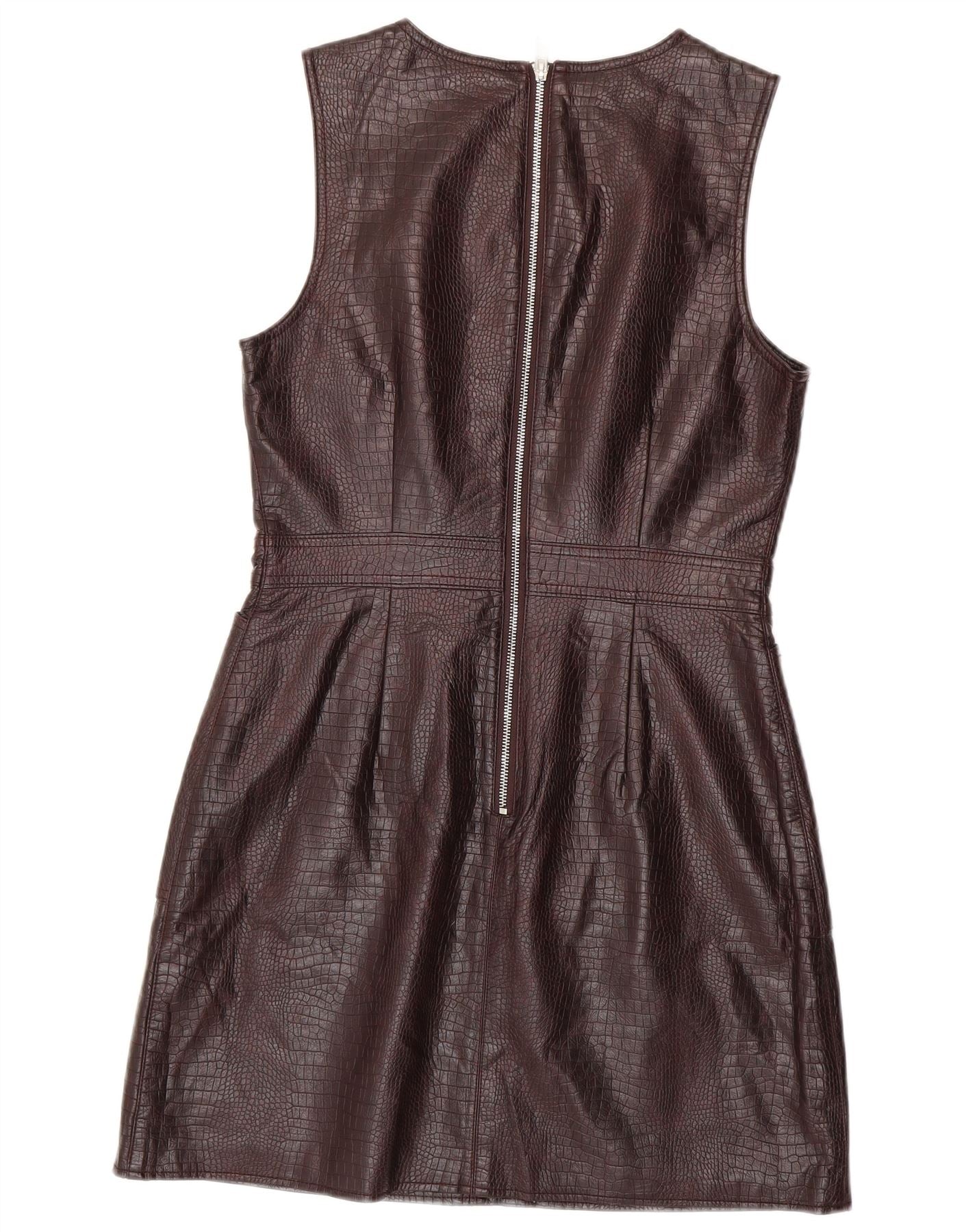 WAREHOUSE Damen Ärmelloses Etuikleid UK 12 Mittelbraun mit Tiermuster