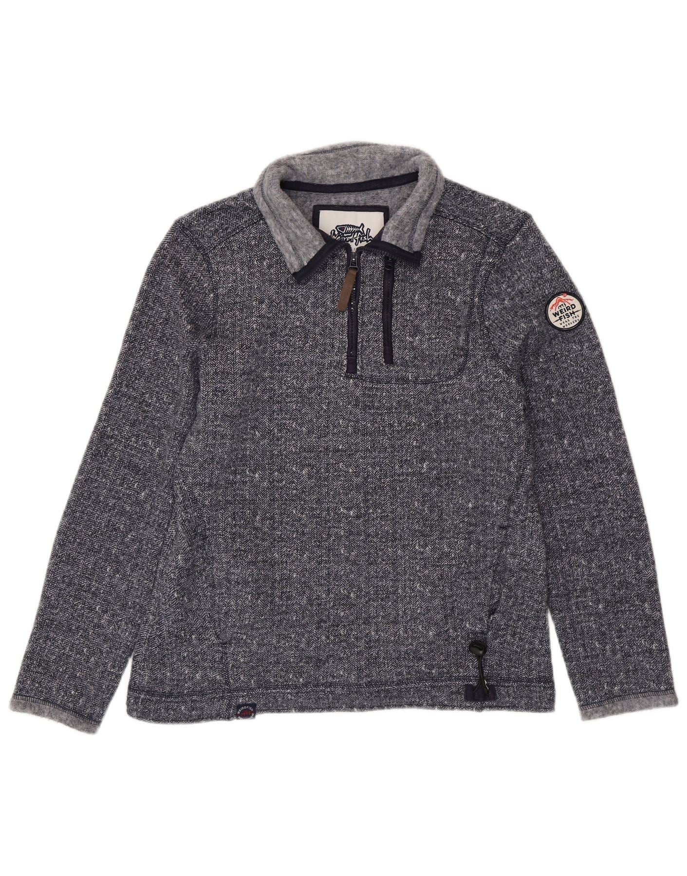 WEIRD FISH Herren-Sweatshirt mit Reißverschluss am Hals, Größe S, Marineblau, Fischgrätenmuster
