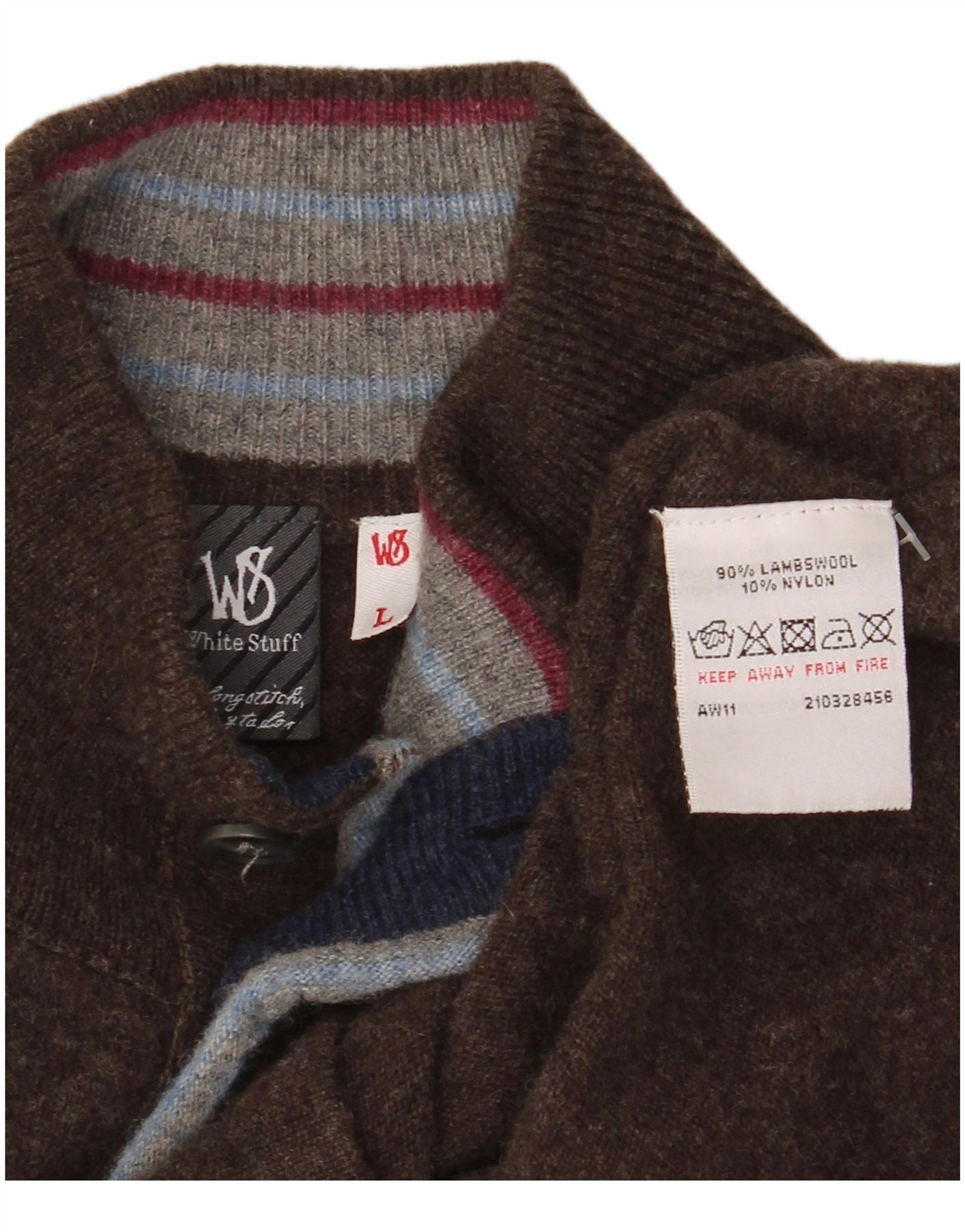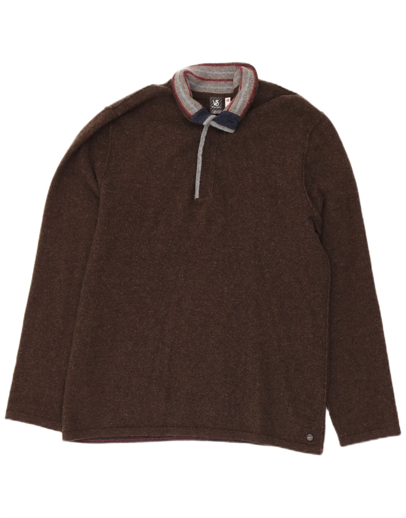 WHITE STUFF Herren-Pullover mit Knopfkragen, groß, braune Lammwolle