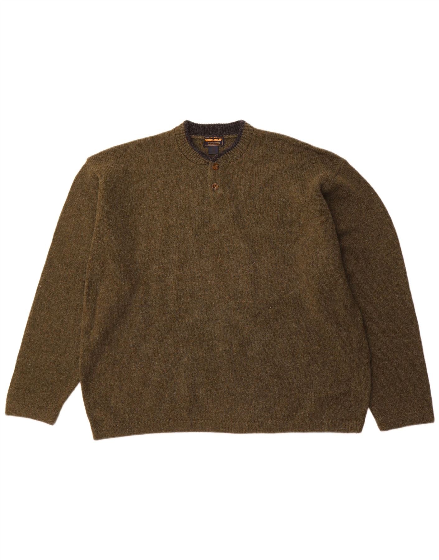 WOOLRICH Herren-Pullover mit Knopfkragen, 2XL, Khaki, Wolle