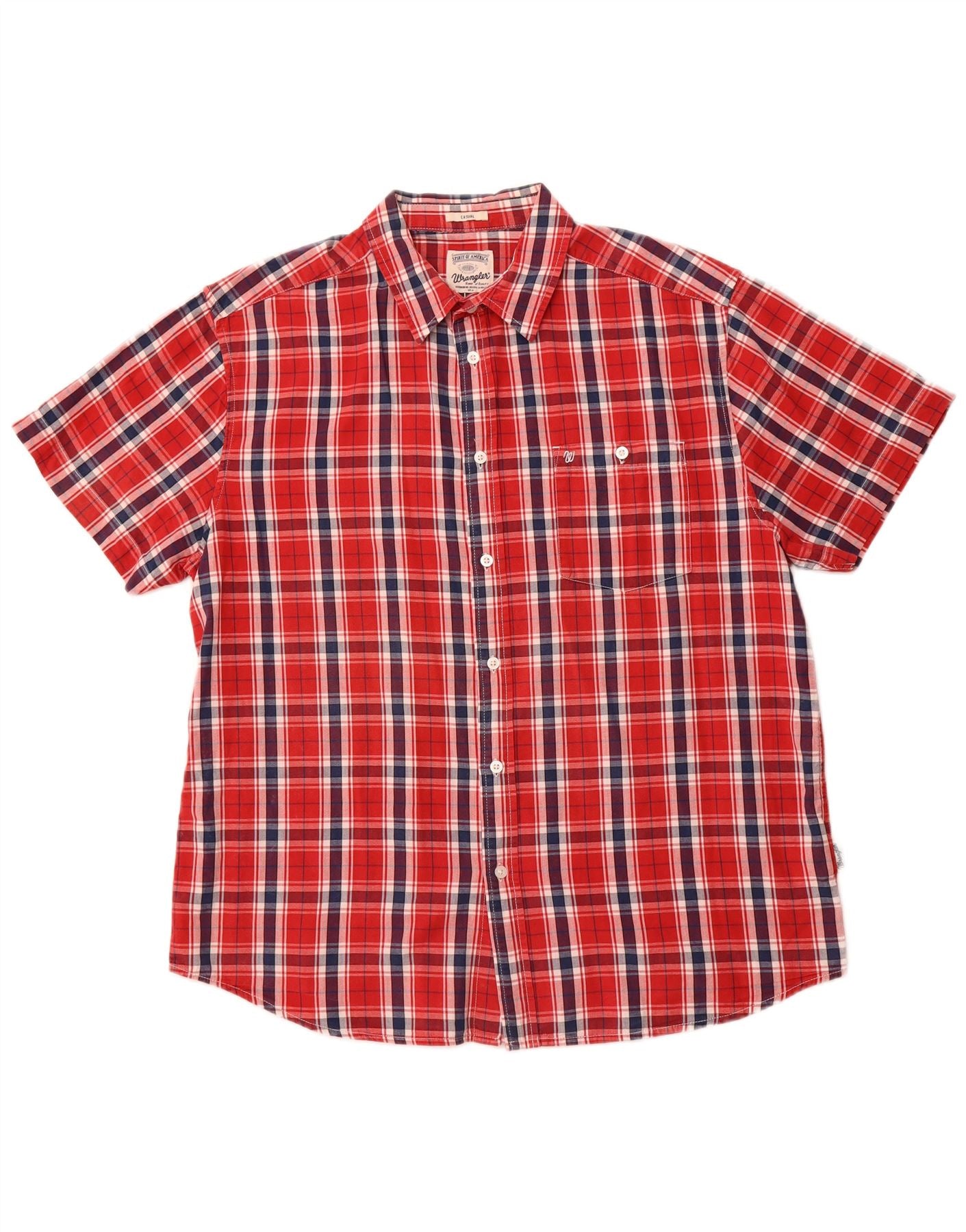WRANGLER Herren-Hemd, legere Passform, kurzärmelig, XL, rot kariert, Baumwolle