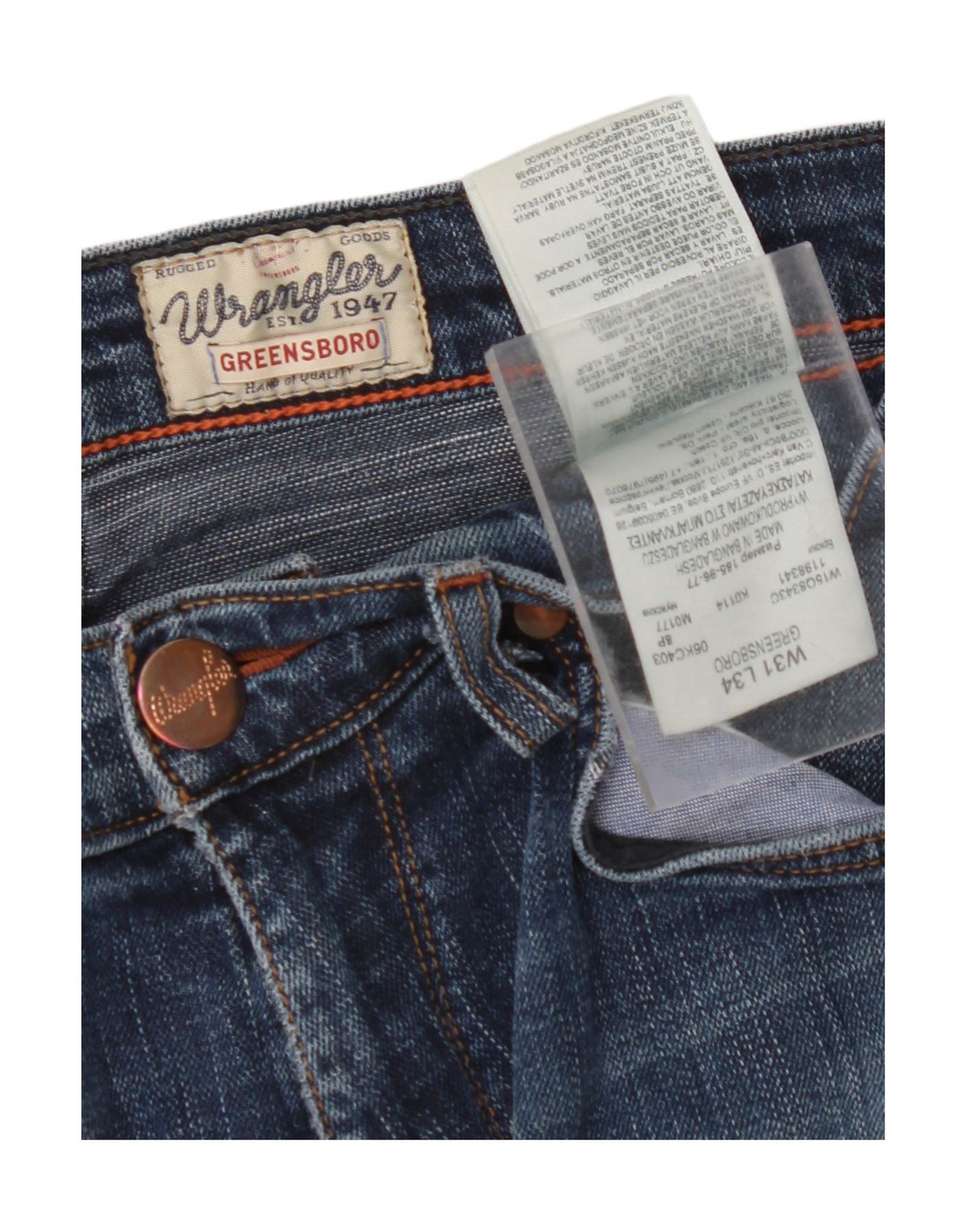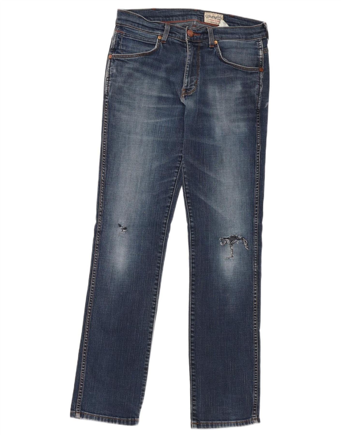 WRANGLER Mens Greensboro Distressed Straight Jeans W31 L34 Blue Cotton