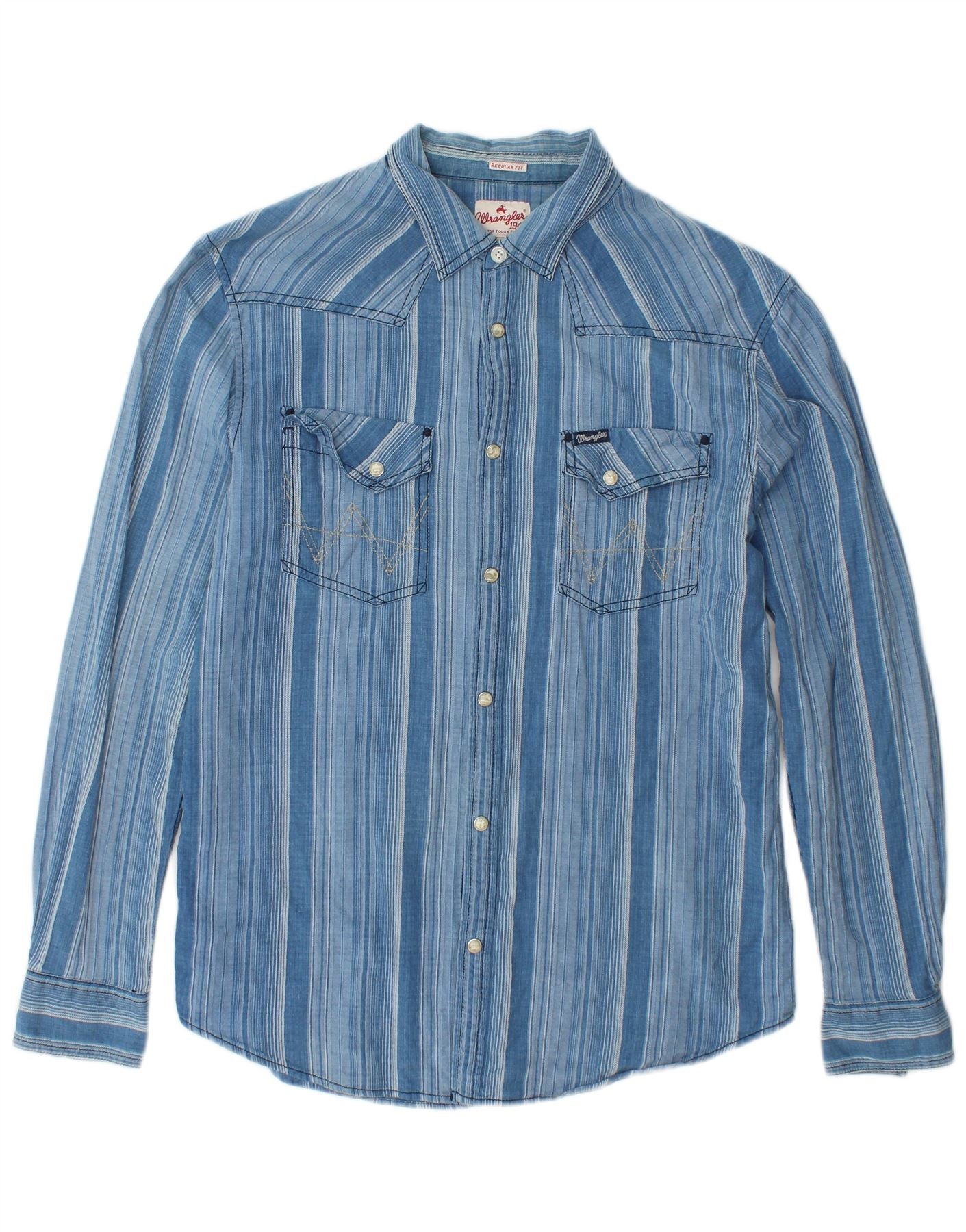 WRANGLER Herren-Flanellhemd mit normaler Passform, groß, blau gestreift, Baumwolle