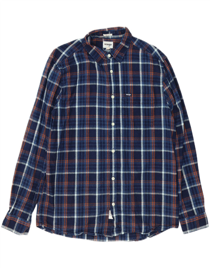 WRANGLER Herren-Flanellhemd mit normaler Passform, groß, marineblau, kariert, Baumwolle