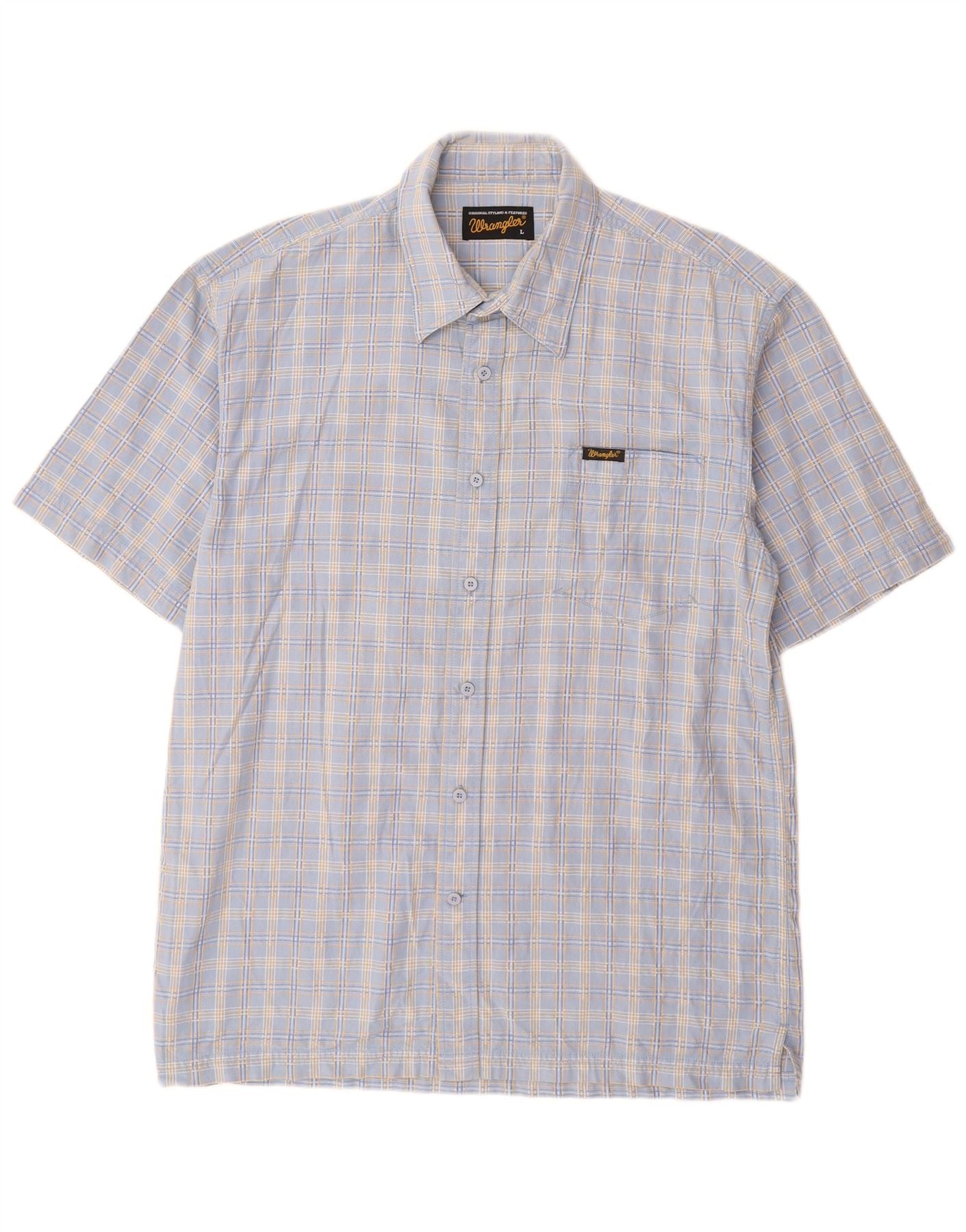 WRANGLER Herren-Kurzarmhemd, groß, blau kariert, Baumwolle
