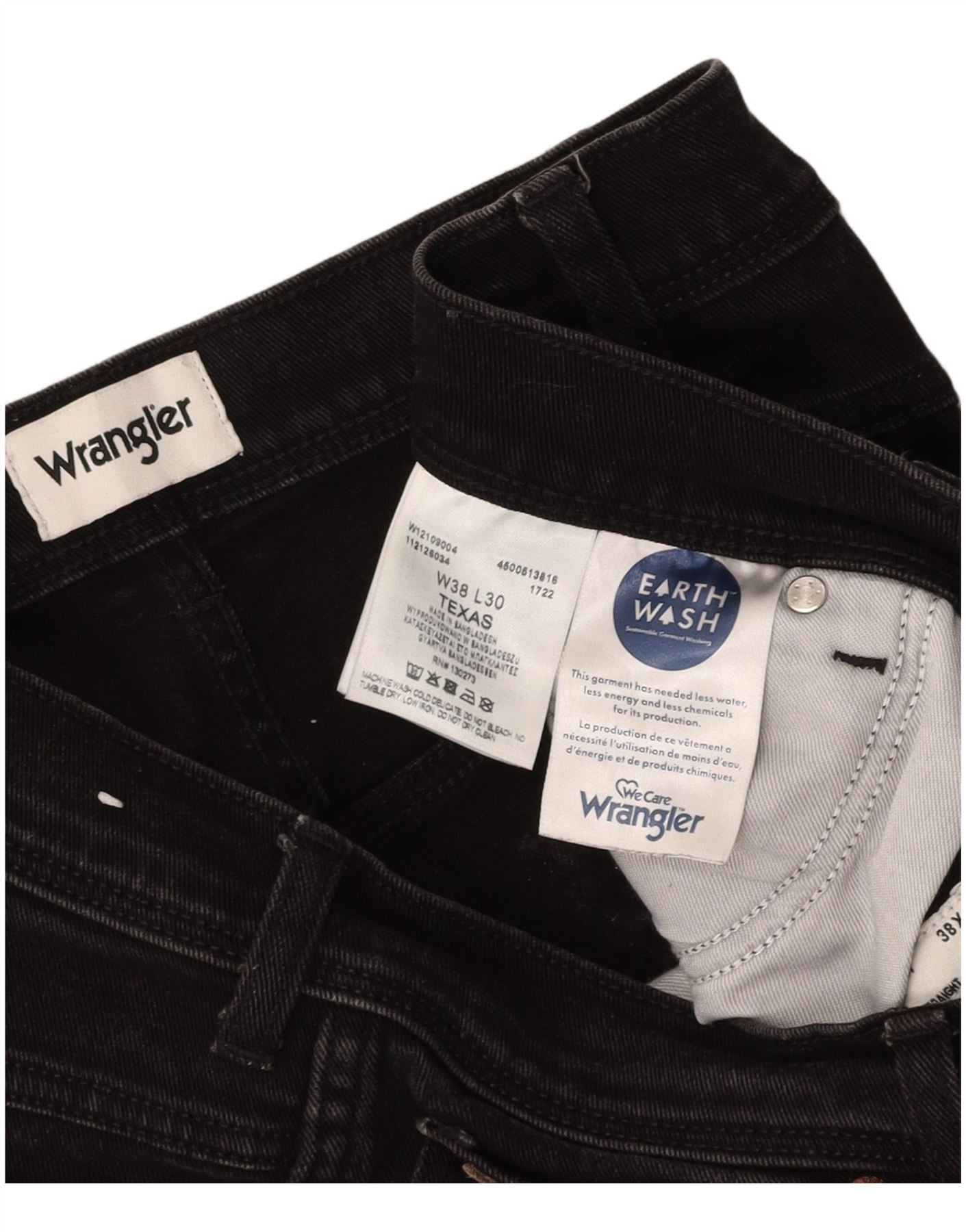WRANGLER Herren Texas Straight Jeans W38 L30 Schwarze Baumwolle