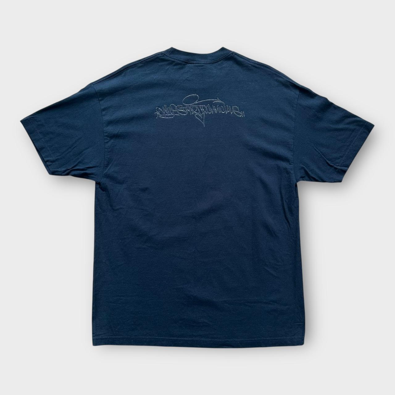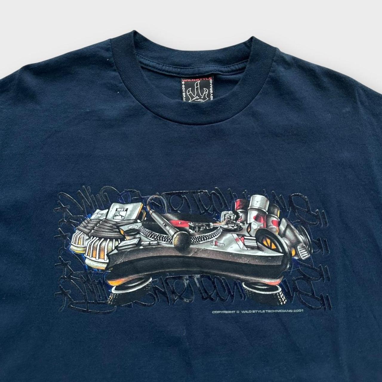 Wildes B-Boy-T-Shirt im Hip-Hop-Stil aus den frühen 2000er Jahren mit Grafik aus dem Jahr 2001 in Marineblau mit Aufdruck auf der Brust und dem Rücken