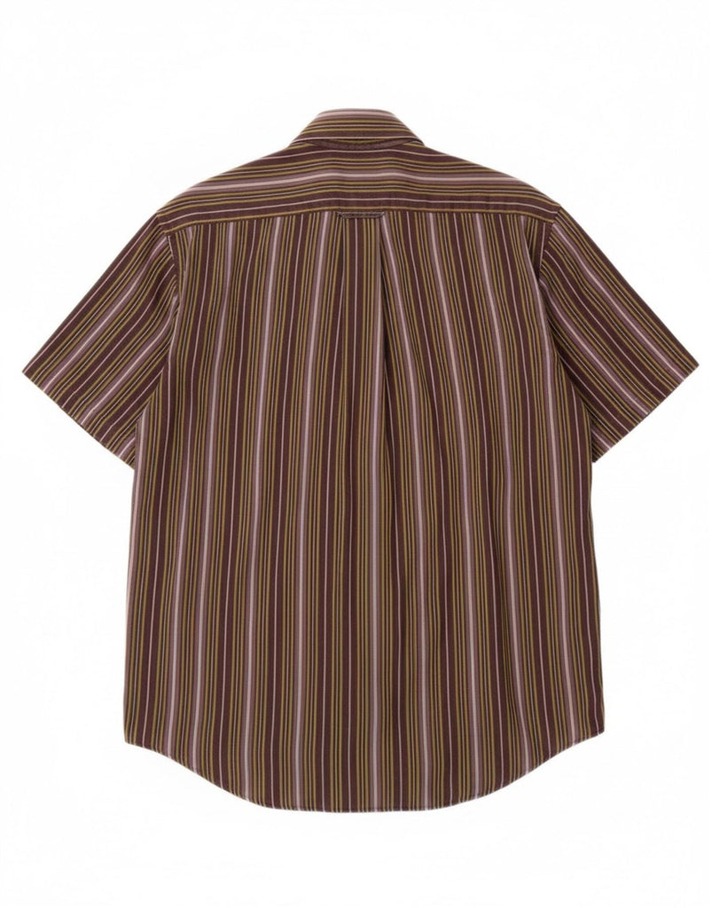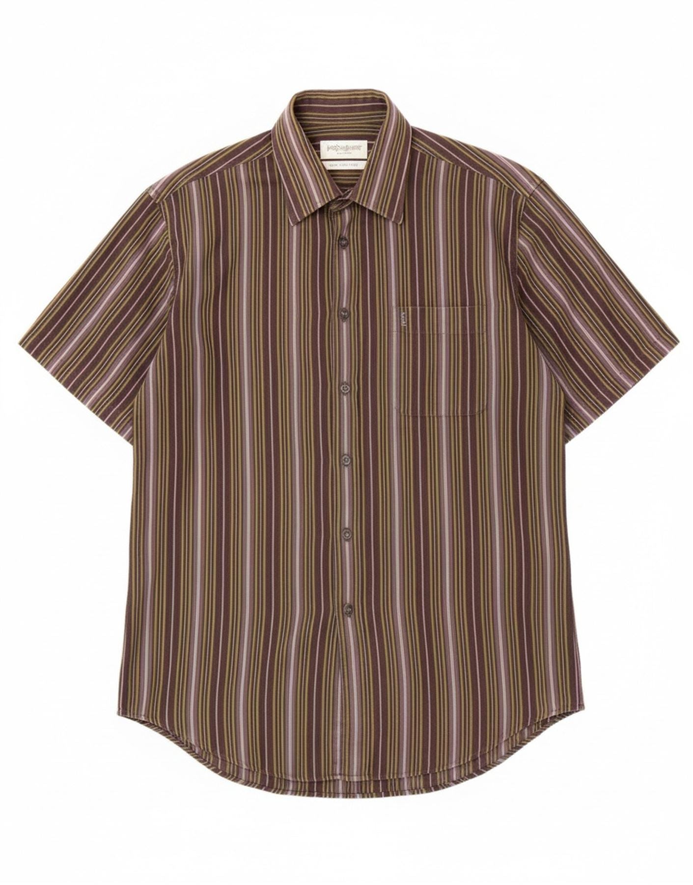 YVES SAINT LAURENT Mens Short Sleeve Shirt Medium Purple Striped Cotton