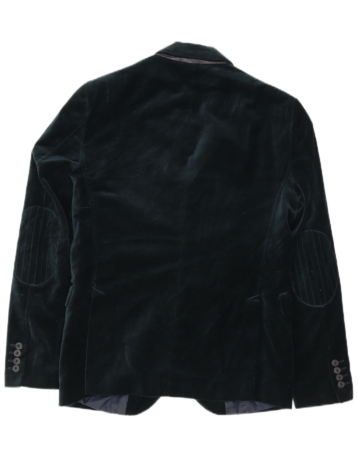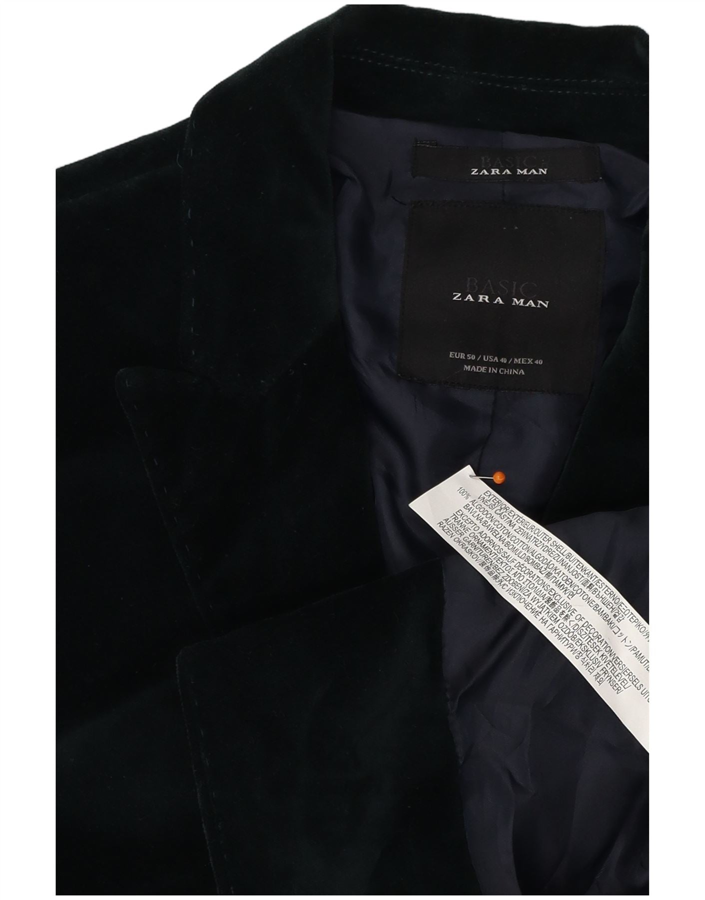ZARA Herren-Blazer aus Samt mit 2 Knöpfen, EU 50, mittelgrüne Baumwolle