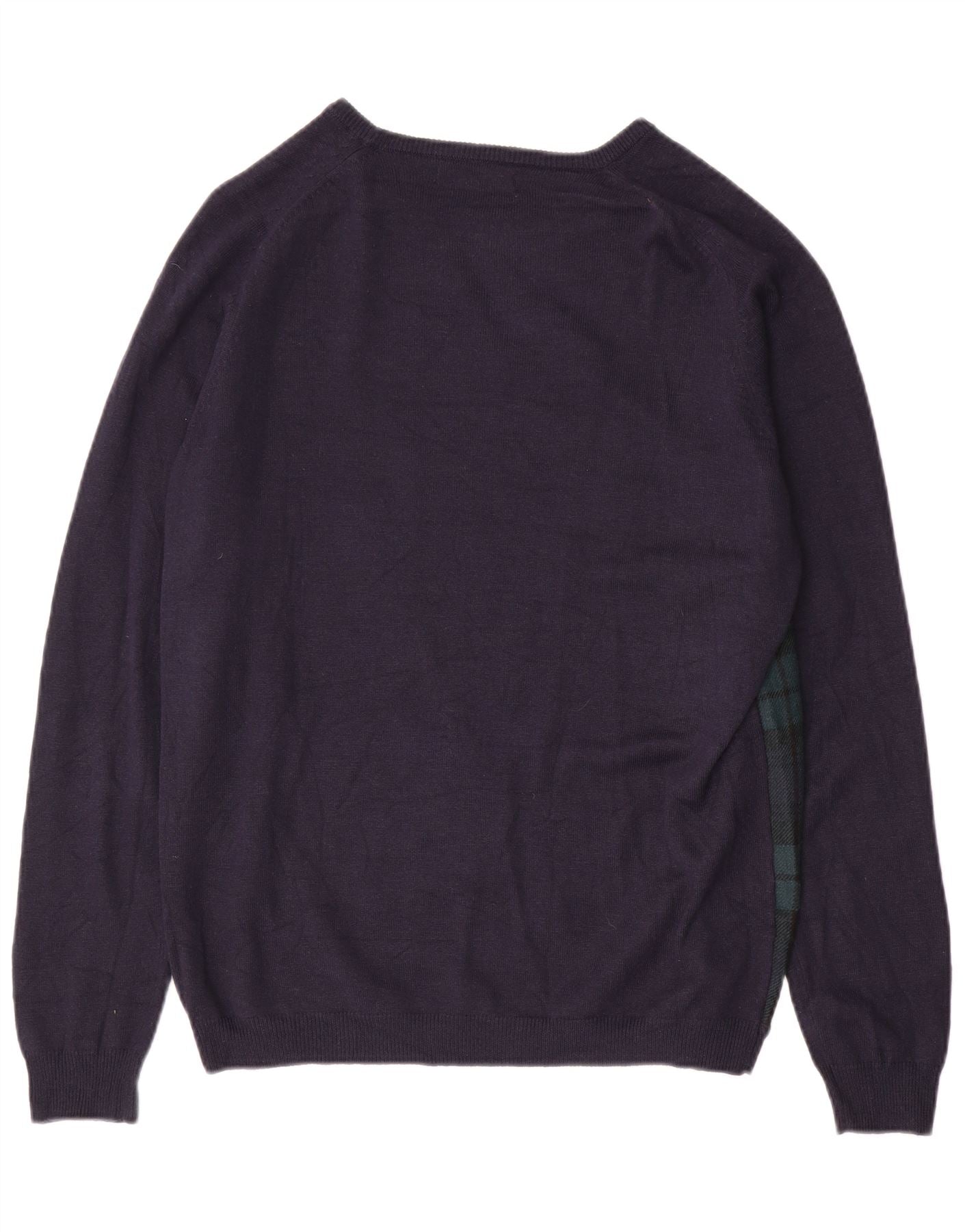 ZARA Herren-Pullover mit U-Boot-Ausschnitt, XL, Marineblau kariert