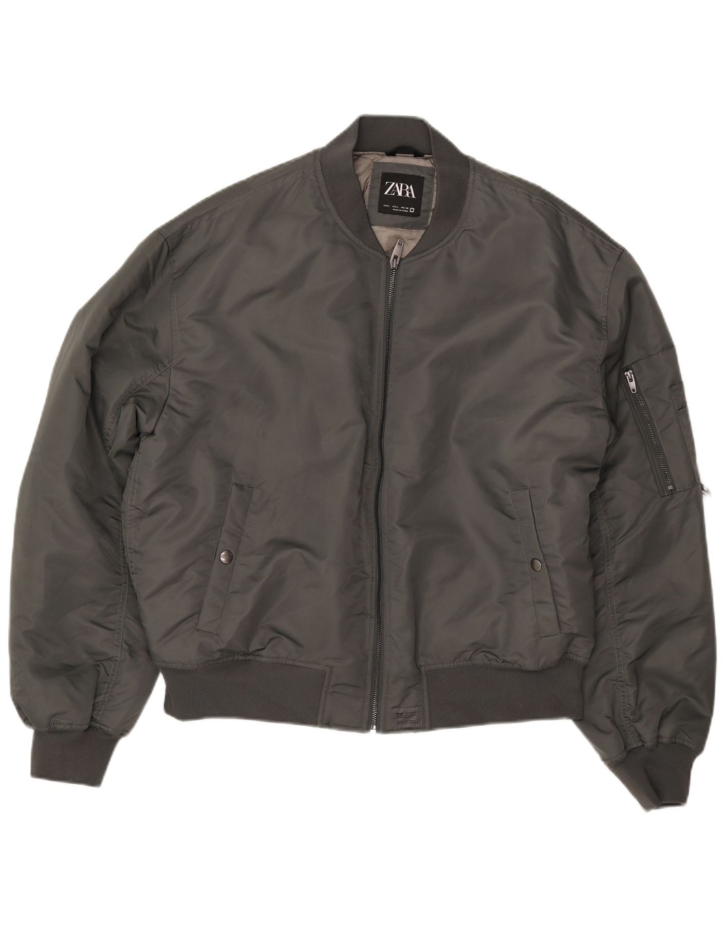 ZARA Herren Bomberjacke UK 40 Large Grau Polyester