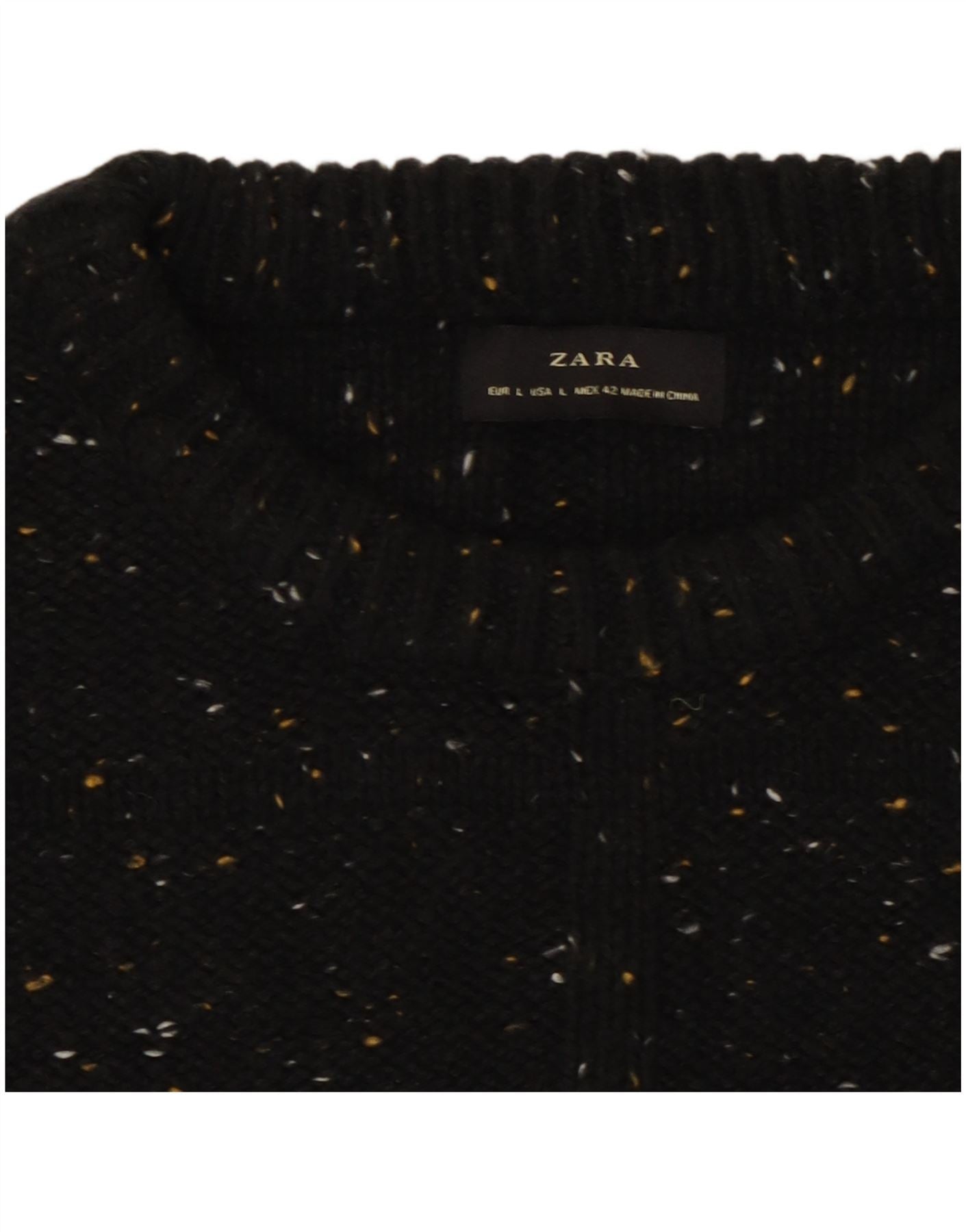 - KI-Beschreibung: Dieser Herren-Pullover mit Rundhalsausschnitt von Zara ist aus einem bequemen schwarzen Strickstoff gefertigt. Es weist durchgehend ein markantes gesprenkeltes Muster auf, das für optisches Interesse sorgt. Der klassische Rundhalsausschnitt und die langen Ärmel sorgen für eine zeitlose Silhouette. Sein Pullover-Design sorgt für Tragekomfort. Eine normale Passform sorgt für bequemes, alltägliches Styling.