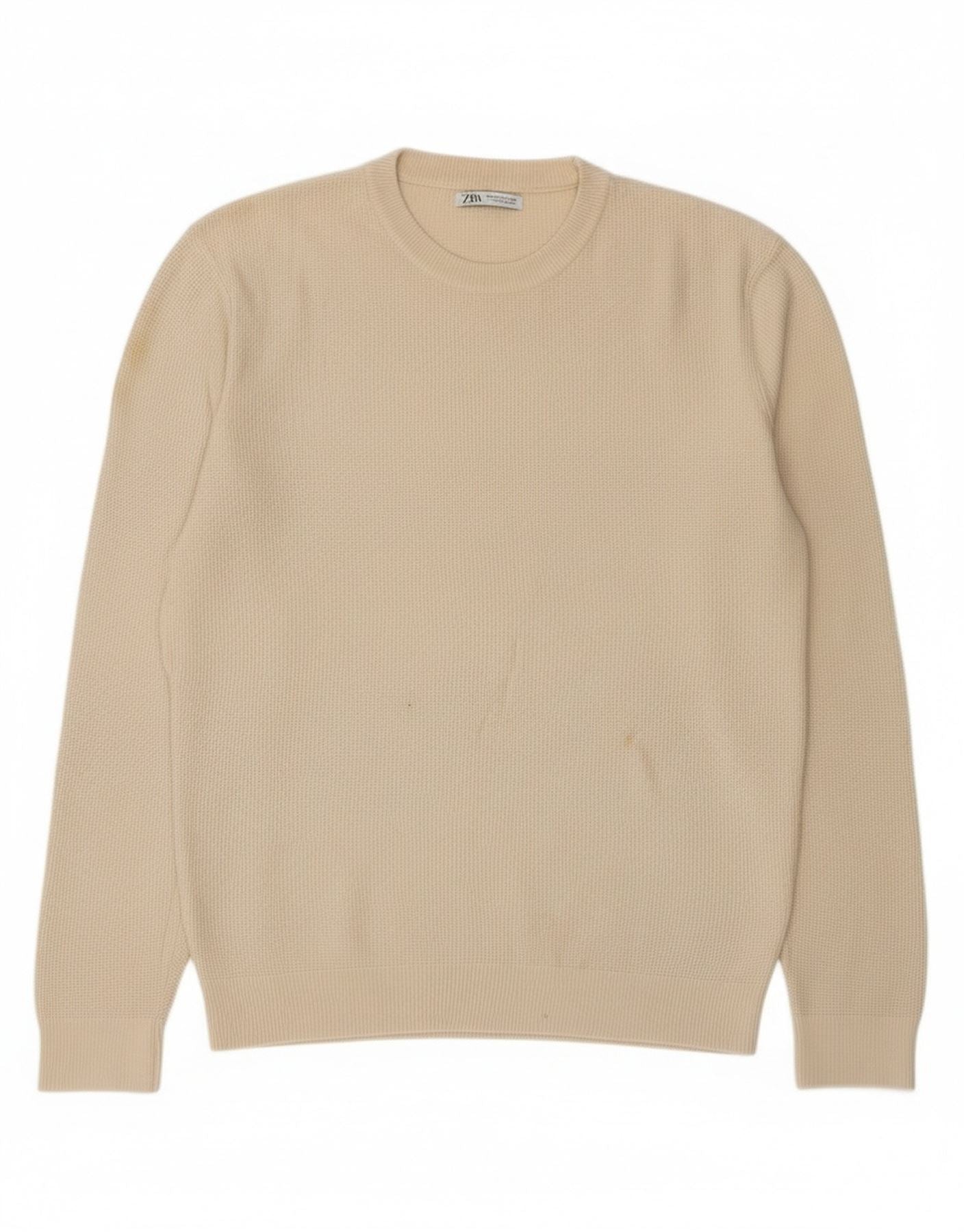 Zara Herren-Pullover mit Rundhalsausschnitt, mittlere, cremefarbene Baumwolle